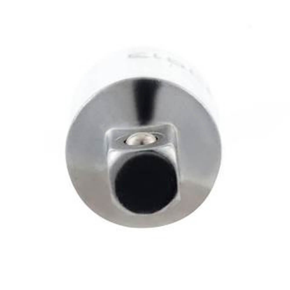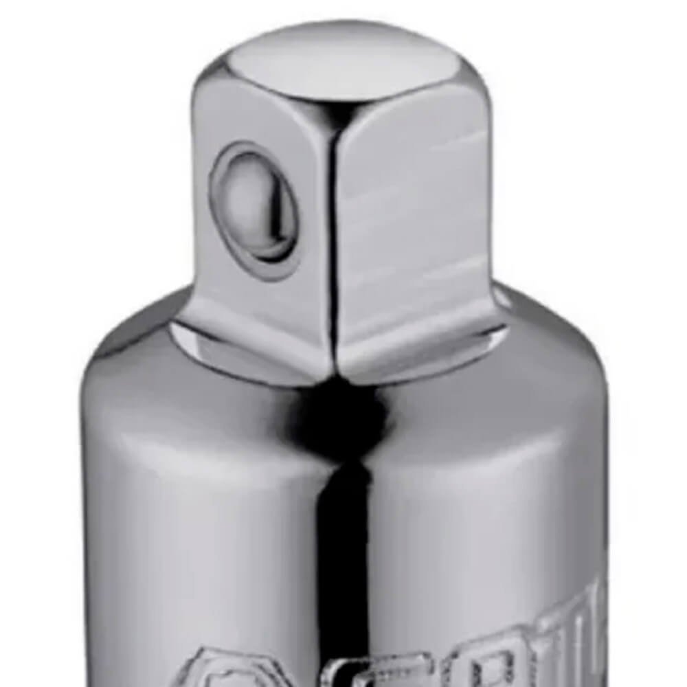 Inclui informação para correto uso do adaptador. Lados "F" Fêmea e "M" Macho. Fabricado em aço Cromo-Vanádio. Com detentor de esferas ajuda a prender o soquete à chave.