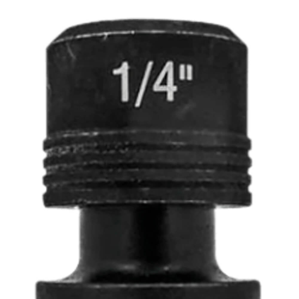 Este adaptador é projetado para facilitar a transição entre um encaixe quadrado de 1/2″ e um encaixe sextavado de 1/4″, proporcionando versatilidade e praticidade nas aplicações de fixação.