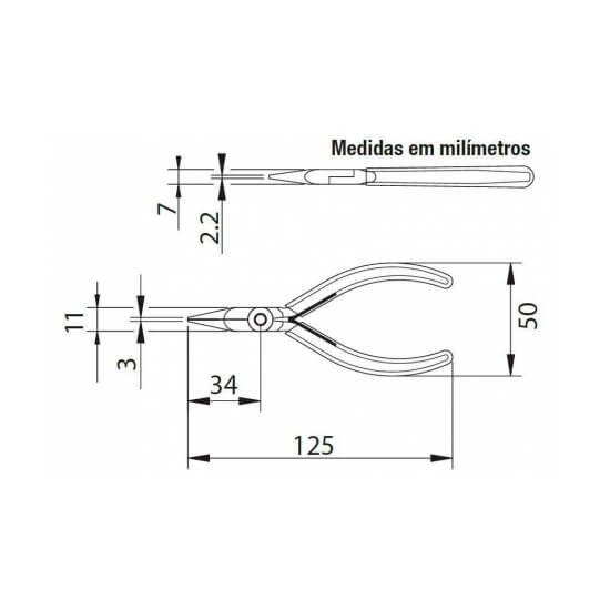 - Aplicações: Indicado para trabalhar em montagens e reparos eletroeletrônicos. Sem corte, com dentes finos e cruzados, que permite puxar, segurar e dobrar fios e cabos.
