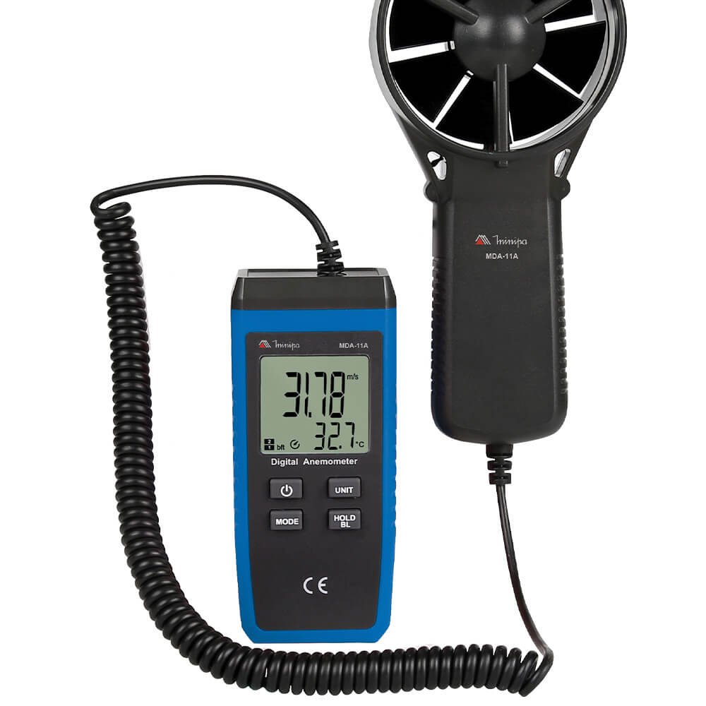 O Medidor de Velocidade do Ar MDA-11A é um instrumento de medição de alta precisão, ideal para aplicações que requerem aferição da velocidade do vento. Com display de 4 dígitos principal e 3 1/2 secundário, iluminação e faixas de medida abrangentes, que vão de 0,4 a 30m/s, 1,4 a 108Km/h, 78 a 5905ft/min, 0,7 a 58knots e 0,8 a 67mph. Possui avaliação do vento, função Data Hold, Máx/Mín/Avg e desligamento automático. Compacto e leve, com dimensões de 120x53x43mm