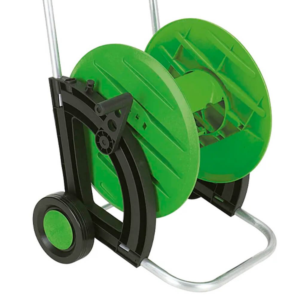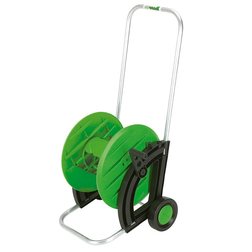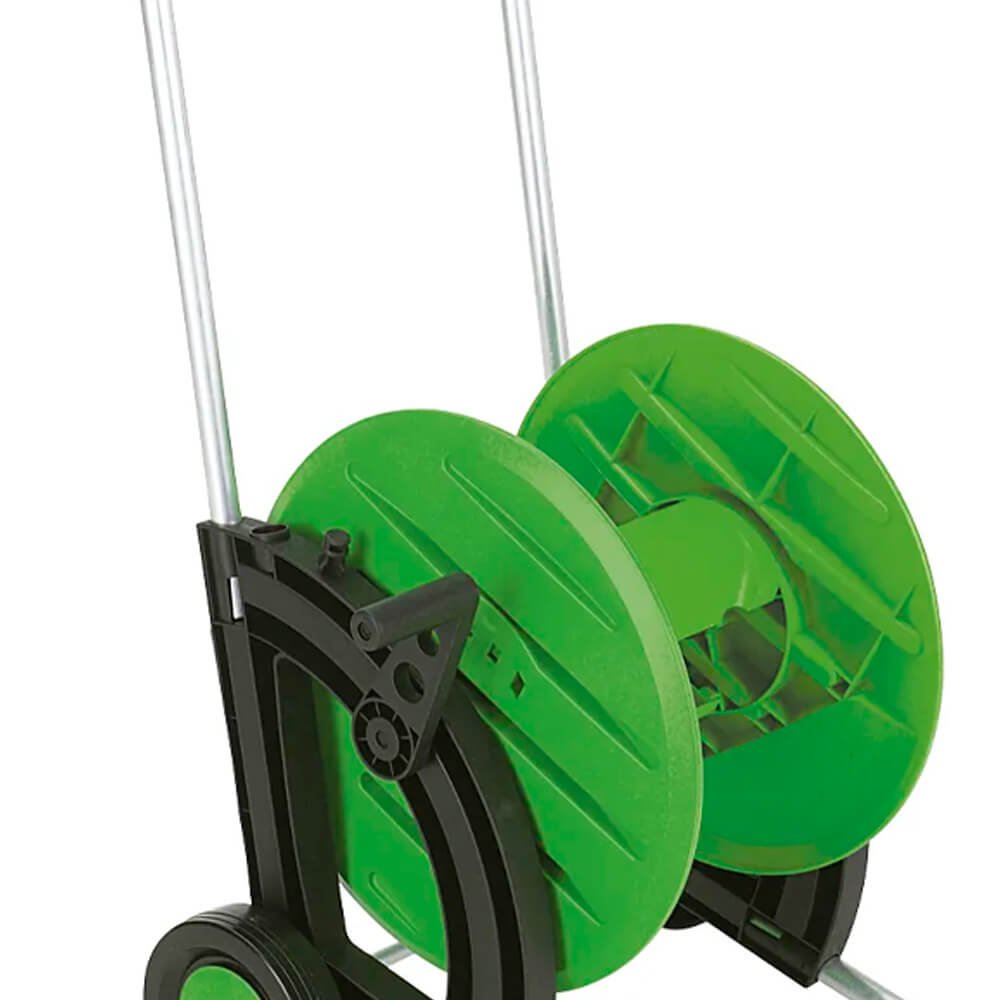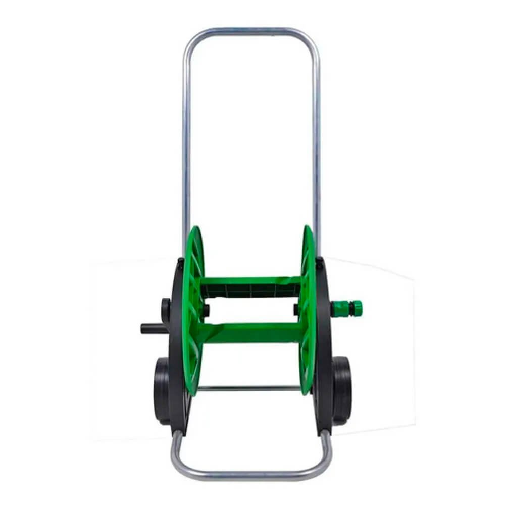 O Enrolador de Mangueira da Trapp possui rodas e funciona como um carrinho para enrolar mangueira de jardim. Possui manivela lateral para enrolar e desenrolar e é capaz de acondicionar até 50 metros de mangueira.