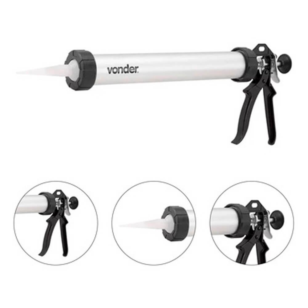 Utilizado para aplicação de veda calha, silicone, selante, selador e colas, em sachê. Ideal para sachê de até 400 ml.