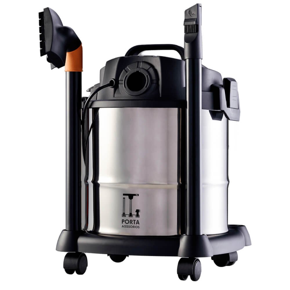 Componentes | Cabo elétrico 2,5 metros; Alça para transporte; 4 Rodízios para transporte; Porta acessórios.; Boia para proteção do motor; Bocal de sopro; Regulagem de sucção. |