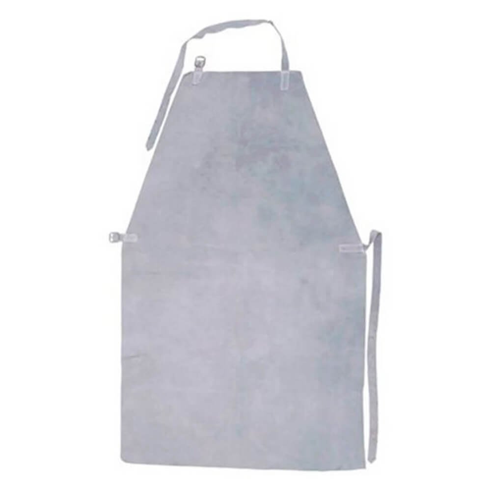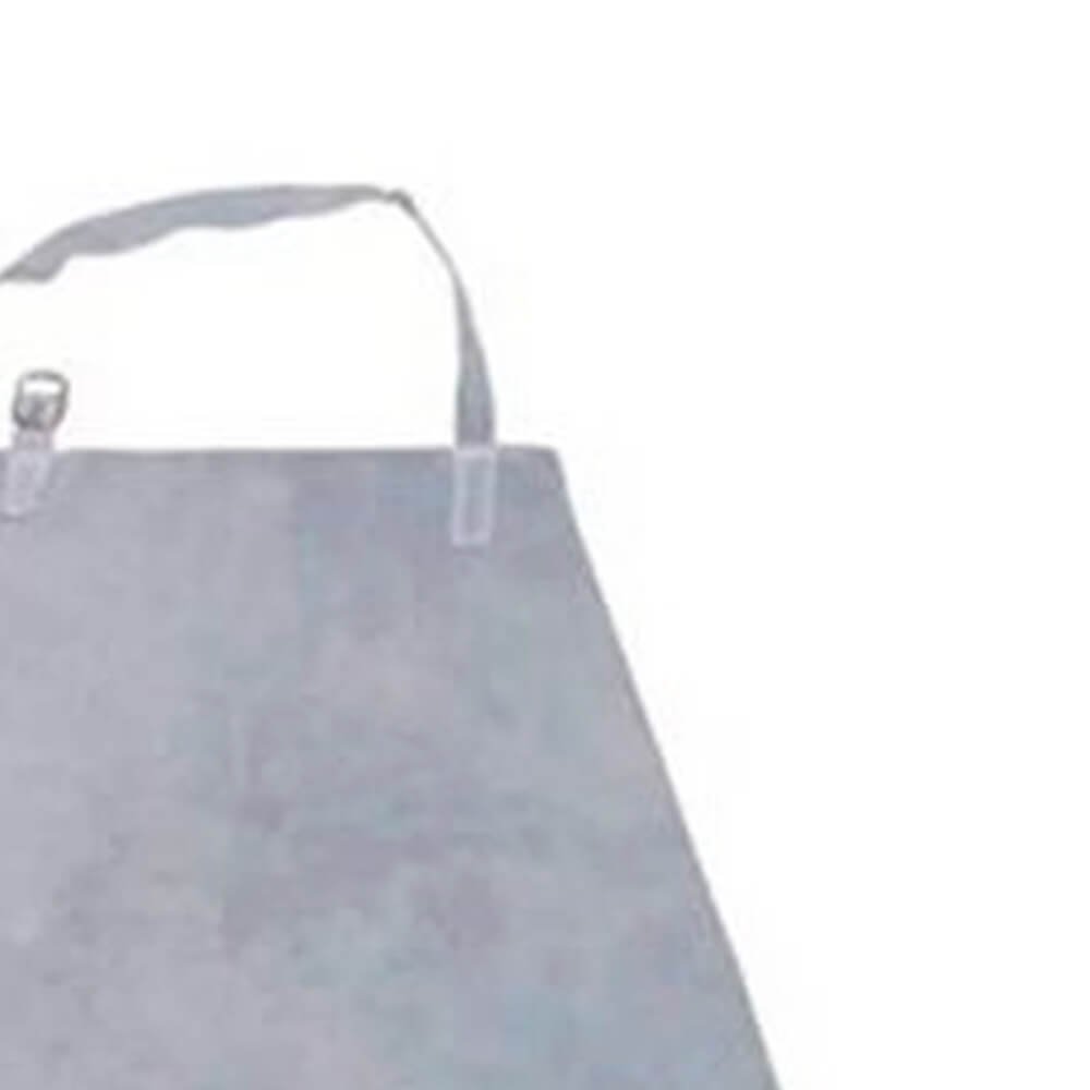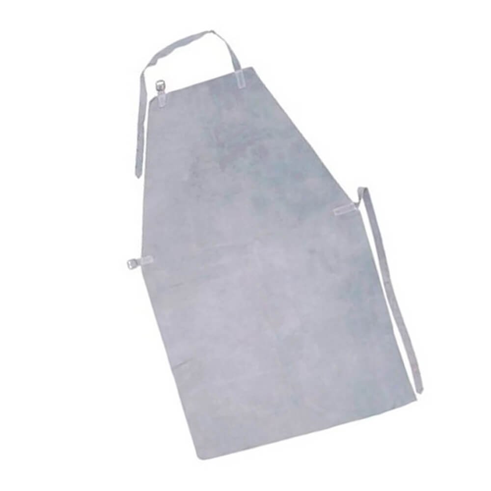 Com e sem emenda, confeccionado em raspa de couro bovino, costurado com fio 100% algodão ou aramida, com tira em raspa no pescoço para fixação, tiras laterais em raspa para fixação e ajuste do avental. Possui fivelas e arrebites metálicos, com a espessura média de 1,50 mm e gramatura 0,0815 gramas/cm² ou 0,815 kg/m². Peso médio de cada avental 100 cm X 60cm – 0,69 kg.