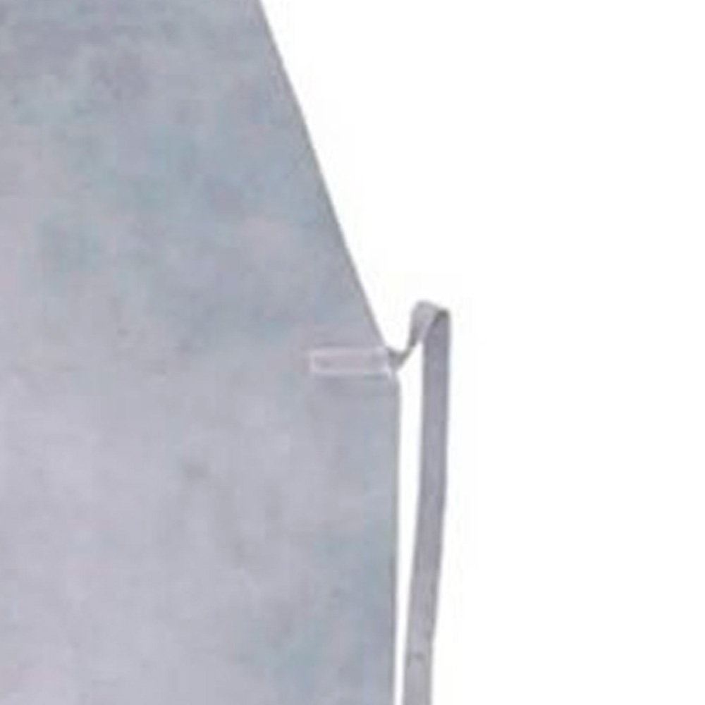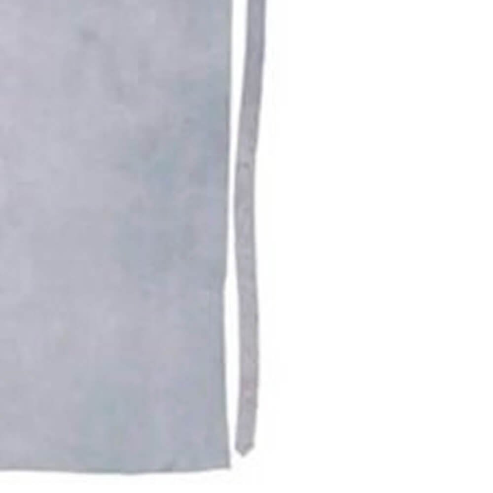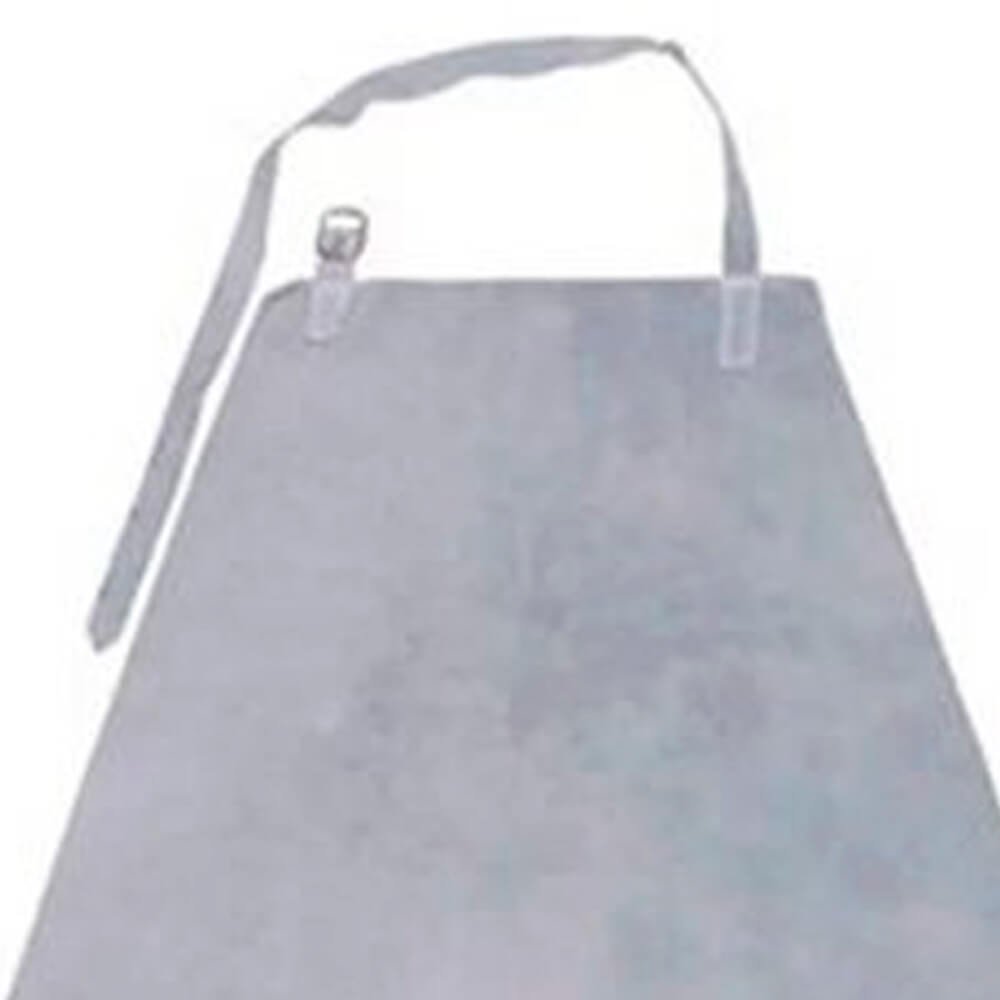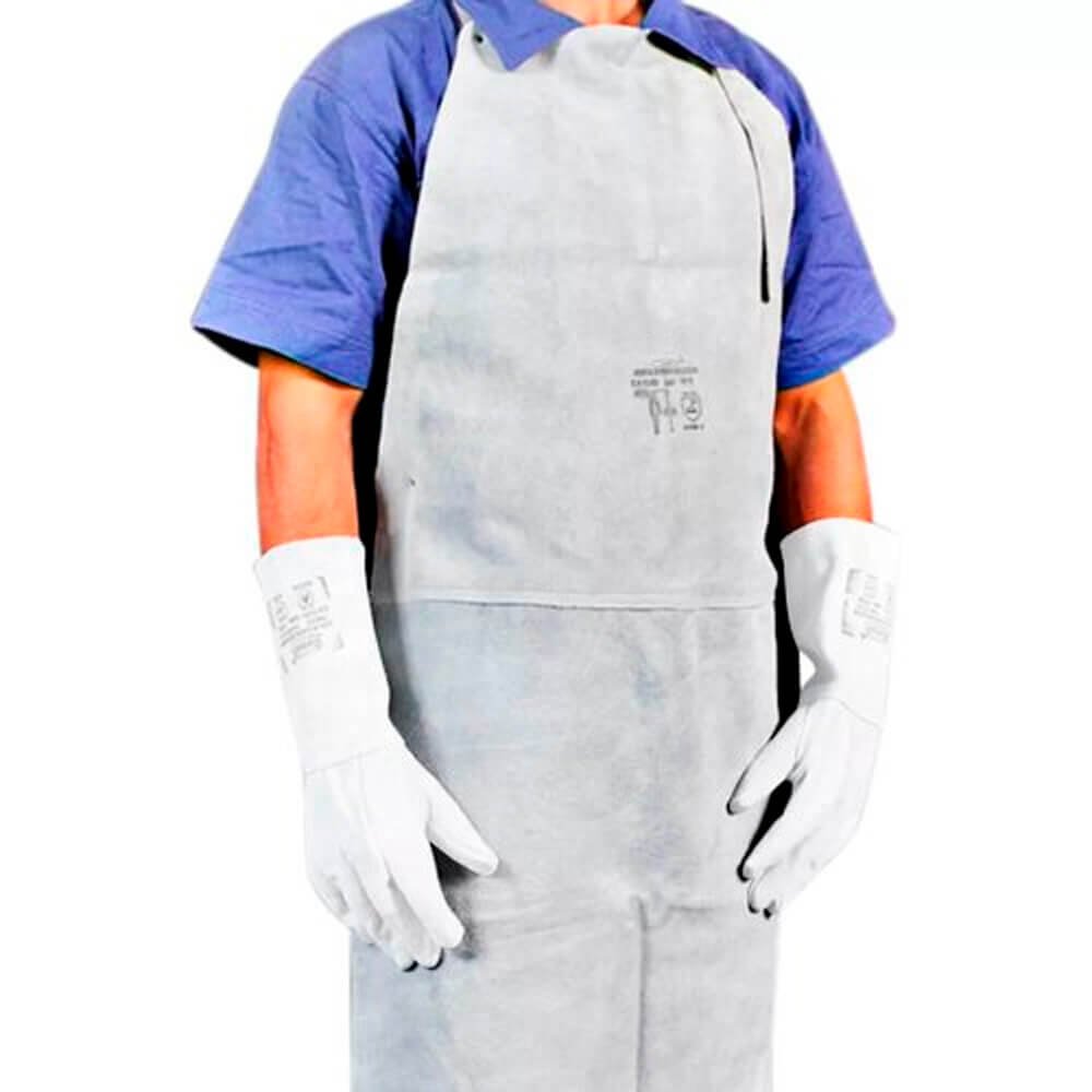 Com e sem emenda, confeccionado em raspa de couro bovino, costurado com fio 100% algodão ou aramida, com tira em raspa no pescoço para fixação, tiras laterais em raspa para fixação e ajuste do avental. Possui fivelas e arrebites metálicos, com a espessura média de 1,50 mm e gramatura 0,0815 gramas/cm² ou 0,815 kg/m². Peso médio de cada avental 100 cm X 60cm – 0,69 kg.