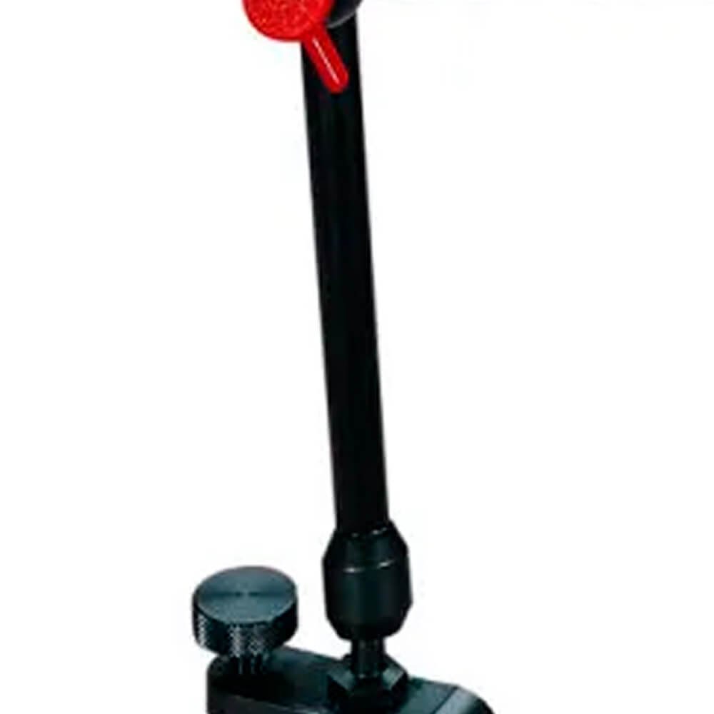 Sua área de atuação atinge raio aproximado de 300mm (12"). O ajuste fino ultra sensível está localizado na base magnética de forma a eliminar a deflexão do relógio quando está sendo ajustado. Esse versátil suporte possui três pivôs para posicionamento do relógio. Todos os pivôs são controlados por parafusos de aperto.