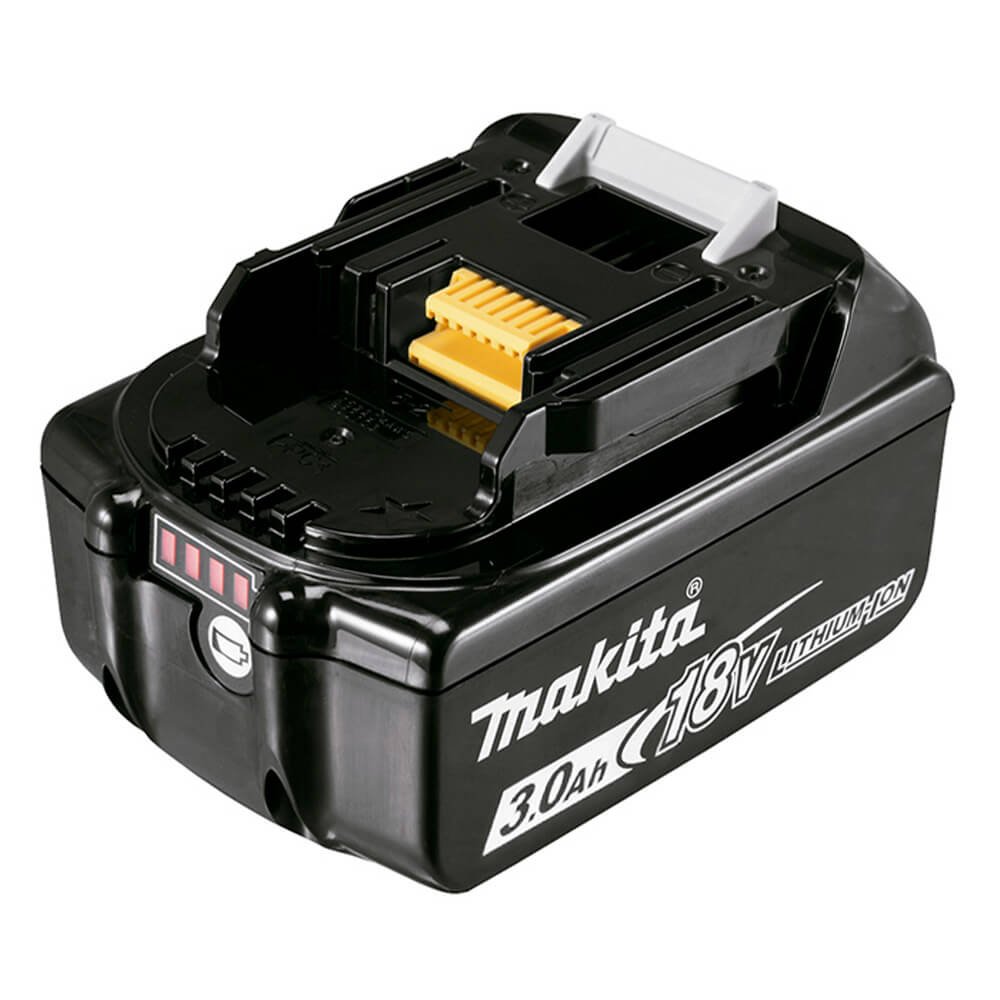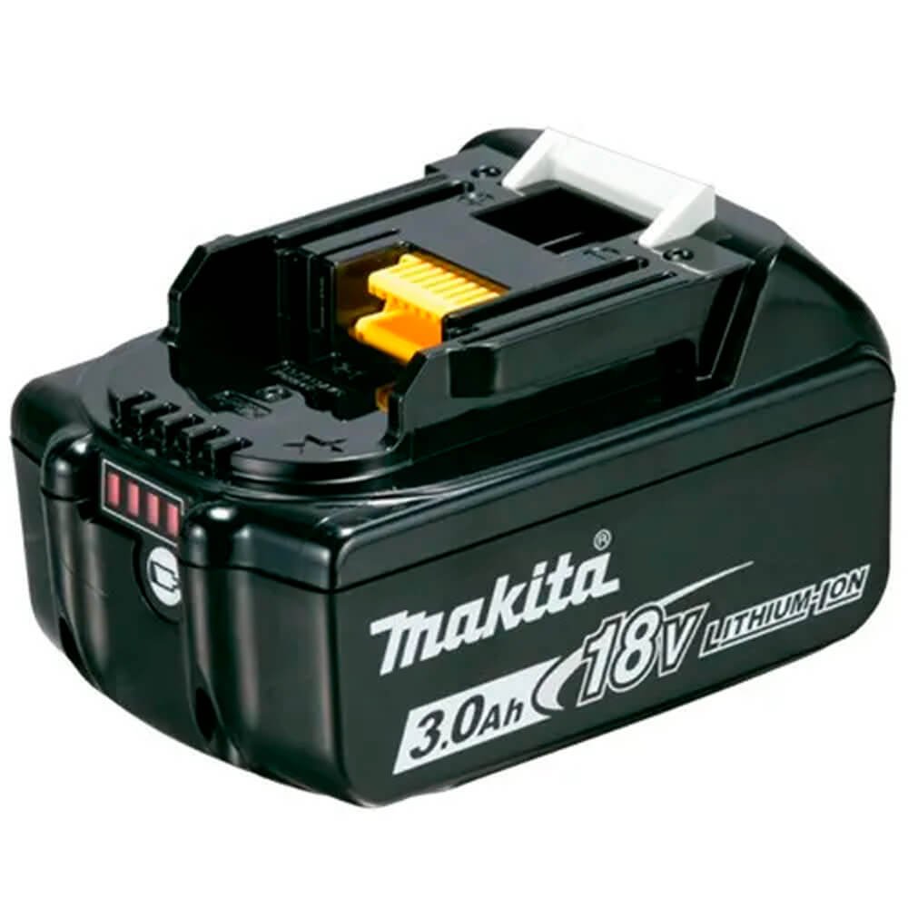 A Bateria recarregável de lítio 18V 3.0 Ah BL1830B da Makita possui indicador de nível de carga e boa autonomia. Perfeita para uso em máquinas a bateria Makita.