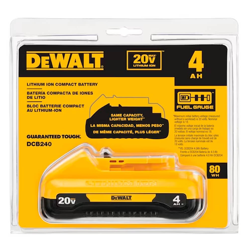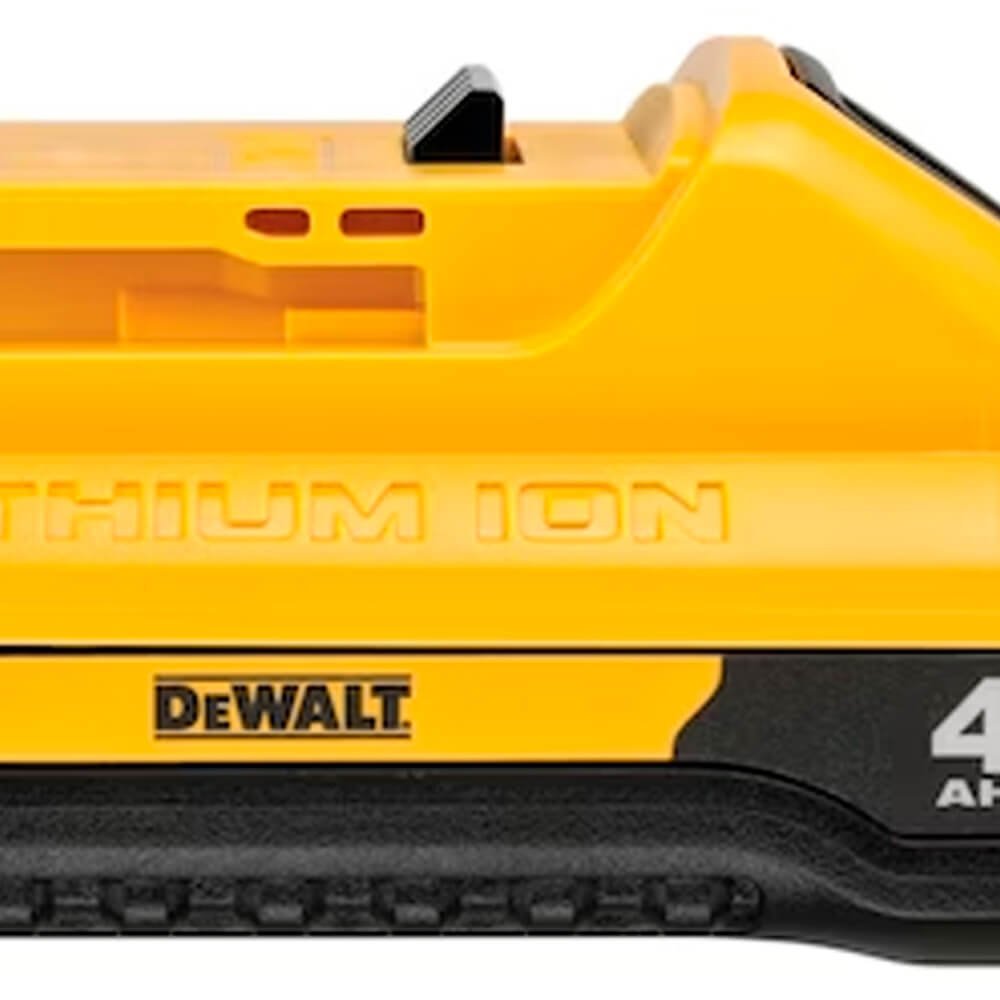 A bateria compacta DEWALT 20V MAX* DCB240-B3 possui 4Ah e é uma excelente opção para garantir a carga e o funcionamento dos equipamentos sem fio.