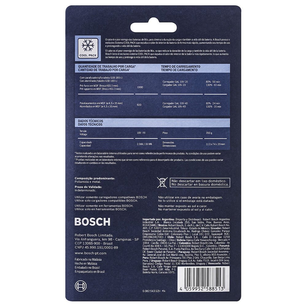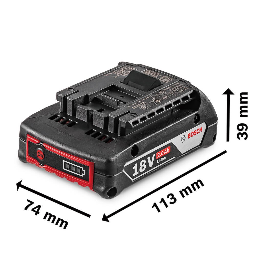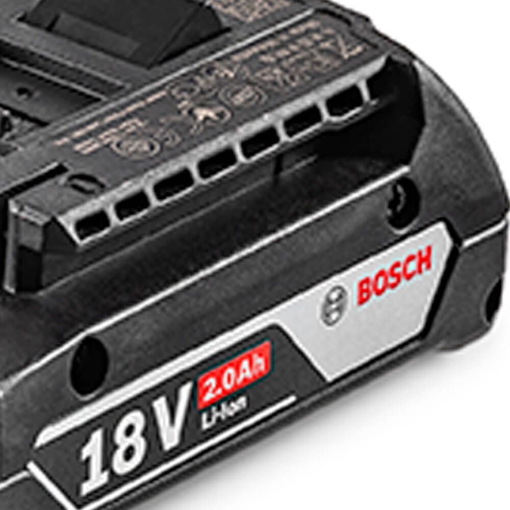 - A GBA 18V 2.0Ah Professional é uma bateria de íons de lítio (Li-ion) com indicador de energia, para informar o nível de carga.