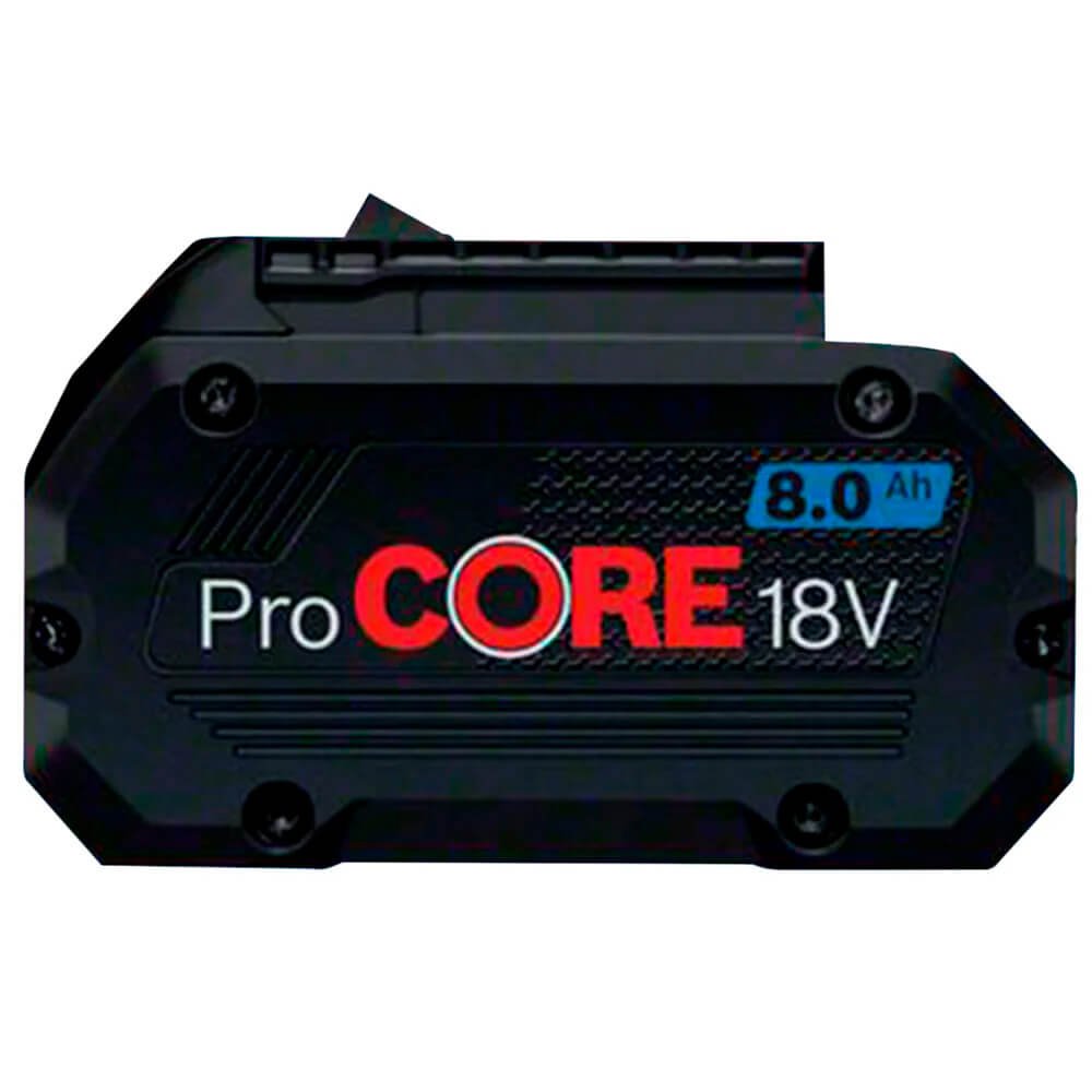 A ProCORE18V 8.0Ah Professional é uma bateria de alto desempenho da série Bosch ProCORE18V, fornecendo o equivalente a até 1.800 W de potência com fio. Sua tecnologia de célula de nova geração, combinada com o gerenciamento inteligente de bateria da Bosch, oferece 87% mais potência do que as baterias convencionais. Para maior flexibilidade, é compatível com todas as ferramentas e carregadores elétricos Bosch Professional 18 V novos e existentes (Professional 18V System). A bateria também dispõe da tecnologia COOLPACK 2.0 para uma superior dissipação do calor de dentro para fora da bateria. Porque o calor pode danificar as células, esta tecnologia COOLPACK 2.0 oferece uma impressionante vida útil 135% mais longa do que as baterias padrão, que permite o funcionamento durante períodos de trabalho mais longos.