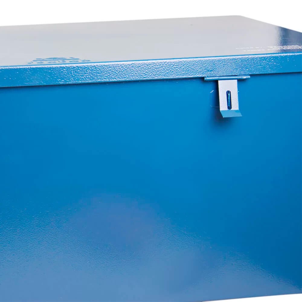 Possibilidade de colocar cadeado, pois o baú possui duas fechas com espaçamento dedicado para cadeados