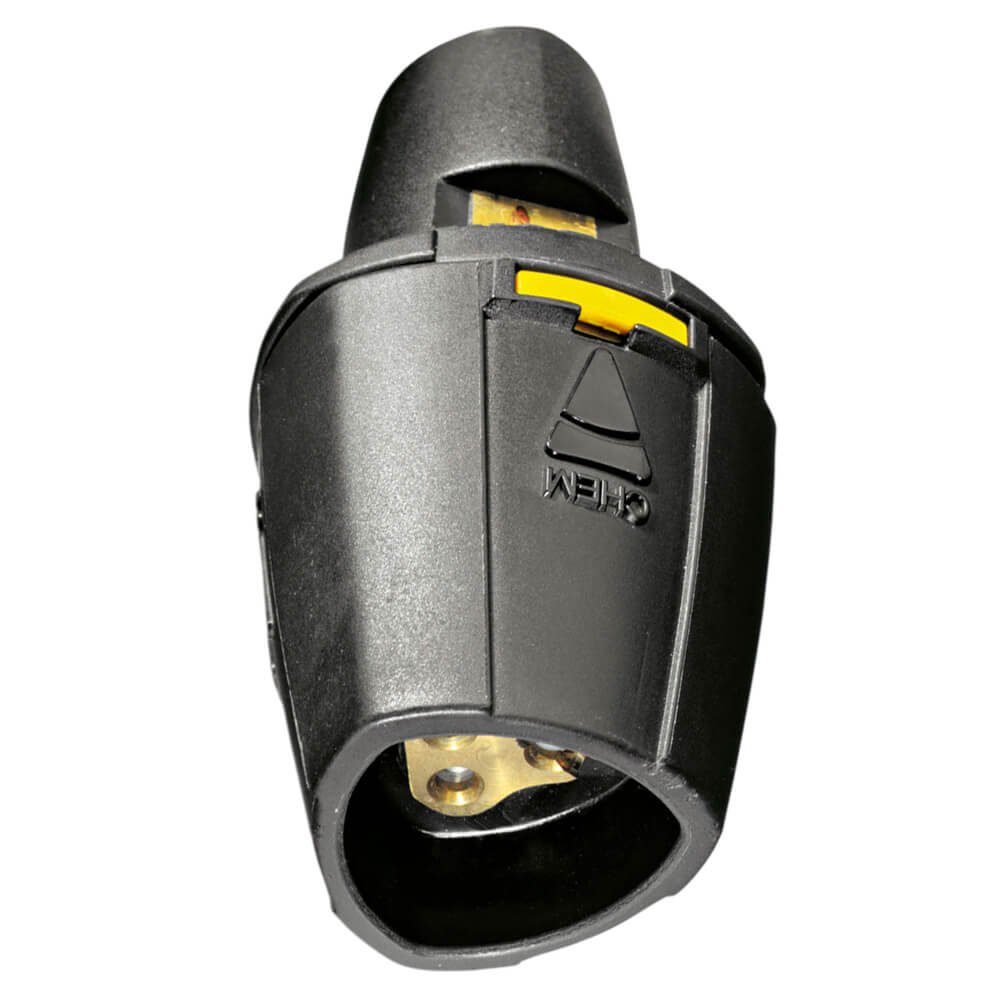 Bico triplo com jato reto de alta pressão, jato leque de 25° e jato em leque de baixa pressão 40°. Troca de jato rápida e fácil rodando o bico.