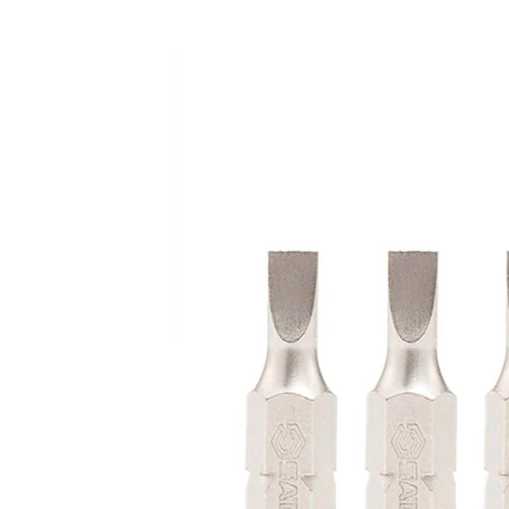 O Jogo de Bits Fenda, é um conjunto de ferramentas de alta qualidade projetado para atender às necessidades dos profissionais e amadores. Esse conjunto inclui cinco bits de fenda de 1/4 de polegada, fabricados em aço cromo vanádio para garantir a durabilidade e resistência. Os bits possuem pontas precisas que garantem um ajuste perfeito em parafusos de fenda. Além disso, eles apresentam um design anti-deslizante, que reduz o risco de danificar o parafuso e aumenta a eficiência do trabalho. Possuem também acabamento fosfatado, o que protege contra a corrosão e o desgaste.