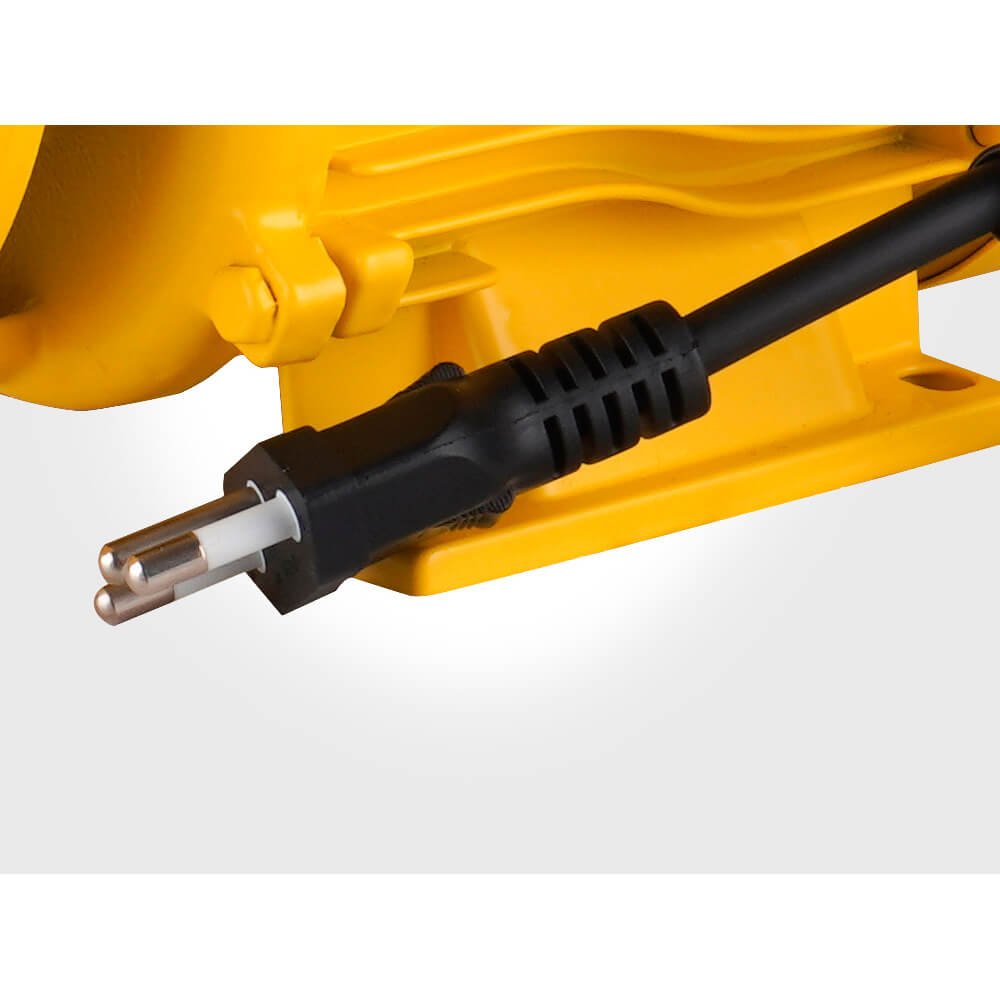 Possui cabo elétrico com plugue bipolar e pino de aterramento: evita curto circuito por emenda, maior segurança ao usuário e ao produto.