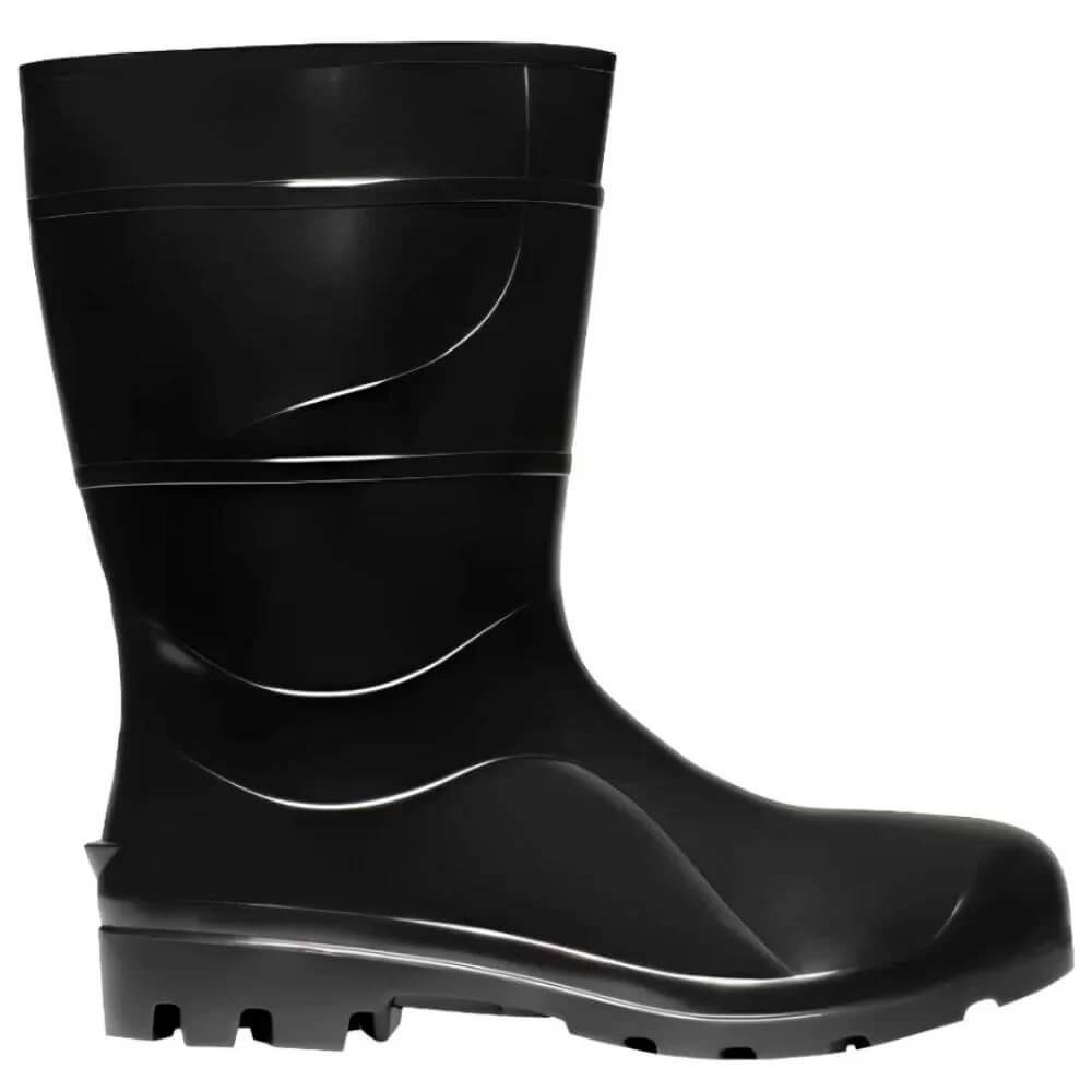 A Botina PVC Preta Cano Médio Sem Forro traz ótimo desempenho de custo-benefício em ambientes industriais agressivos, garantindo proteção dos pés do usuário contra riscos de natureza leve, agentes abrasivos e escoriantes e umidade proveniente de operações com uso de água.