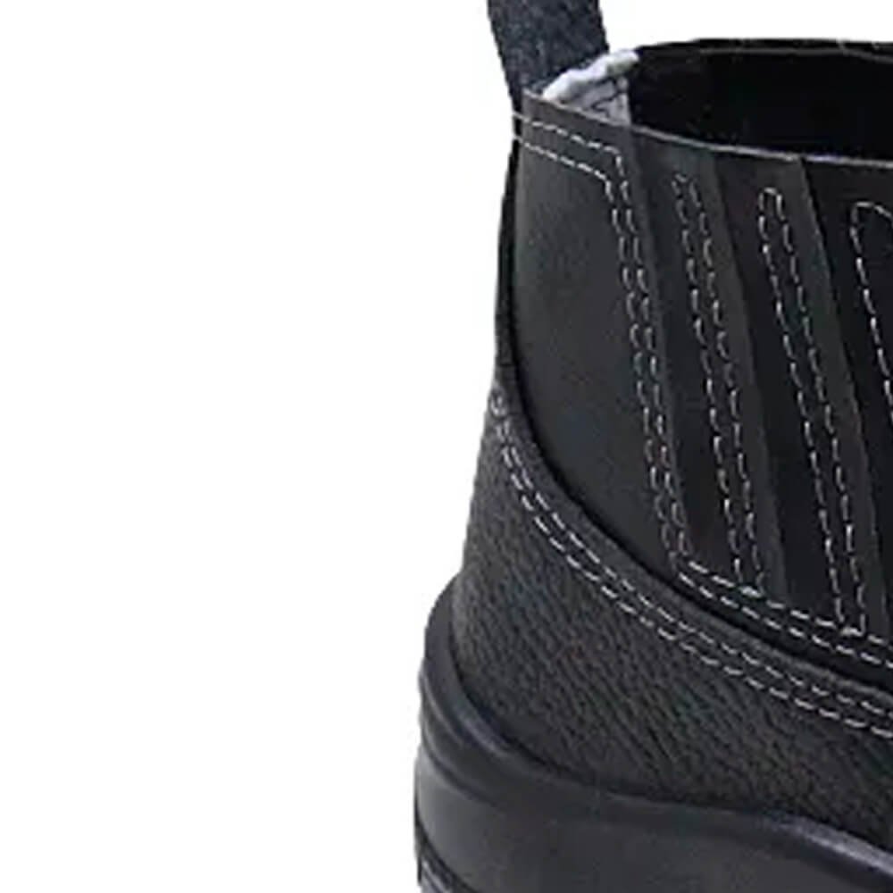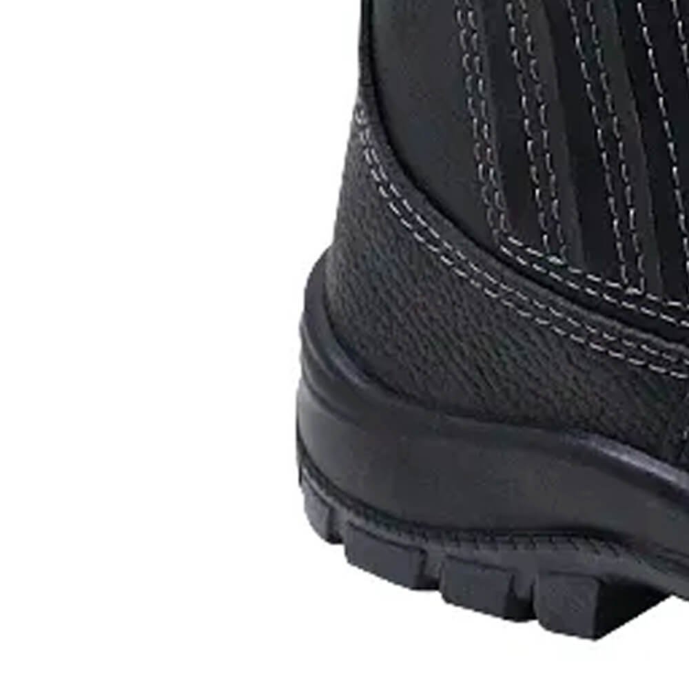 Botina de elástico, linha Combat, 100% couro, preta, com solado em poliuretano. Forração em não tecido transpirável, dorso acolchoado e palmilha de montagem sintética em não tecido costurada pelo sistema strobel. Acompanha sobrepalmilha em EVA, removível, dublada em tecido para absorção do suor.
