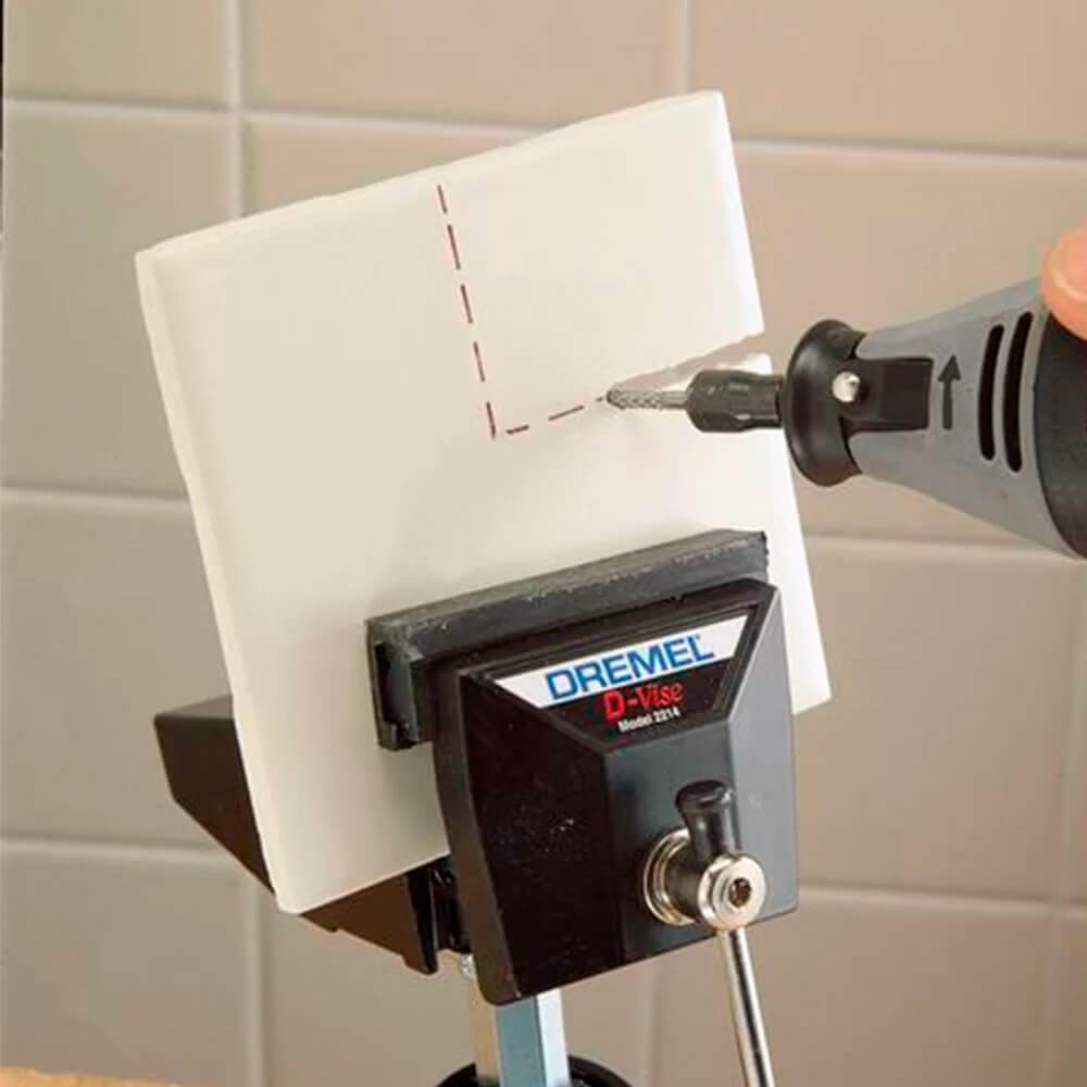Recomendamos a utilização desta ponta com o Acoplamento de corte de azulejos Dremel, porque esta foi projetada para o ajudar a manter a profundidade durante a aplicação. É importante que a profundidade da guia suporte a lâmina de corte estendendo além do material em cerca de 0,6 cm. (.25”). Se a ponta ultrapassar muito o plano do material, esta poderá ser mais difícil de controlar e poderá mesmo se quebrar.