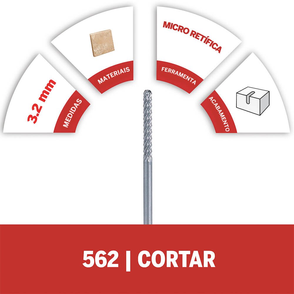 O 562 foi projetado para trabalhar em azulejo cerâmico de parede (azulejo adequado para uso exclusivo em paredes), não adequado para utilização em ladrilhos. Ideal para cortar e furar materiais como azulejos cerâmicos de parede e ladrilhos;