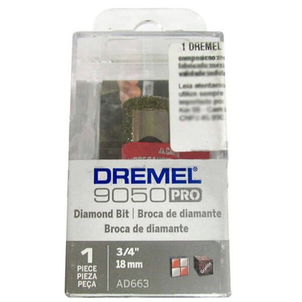 A Serra Copo Dremel Broca Diamantada AD663 de 3/4" de polegada é diamantada para perfuração de materiais duros como mármore, granito, porcelanato e alvenaria;