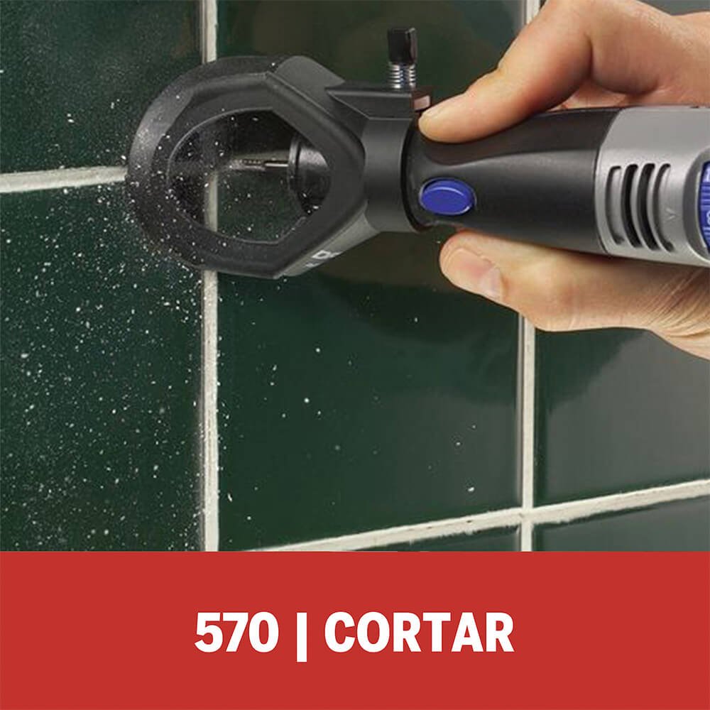 A ponta para argamassa 569 é geralmente inferior à distância entre azulejos de parede (diâmetro da cabeça: 1,6 mm). A 570 foi projetada para penetrar na argamassa de pisos, e é menor (diâmetro da cabeça: 3,2 mm). Estas pontas foram projetadas para fazer pequenos reparos. Se for necessário fazer uma grande remoção, você poderá precisar de várias pontas para remover toda a argamassa.