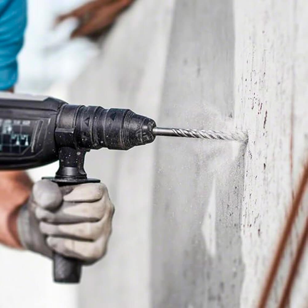 Ponta de metal duro centralizadora, proporcionando alta durabilidade, resistência e posicionamento exato da broca para perfuração eficiente e precisa. Conta ainda com espiral quádrupla e diâmetro do núcleo reforçado para maior resistência e estabilidade na perfuração de concreto.