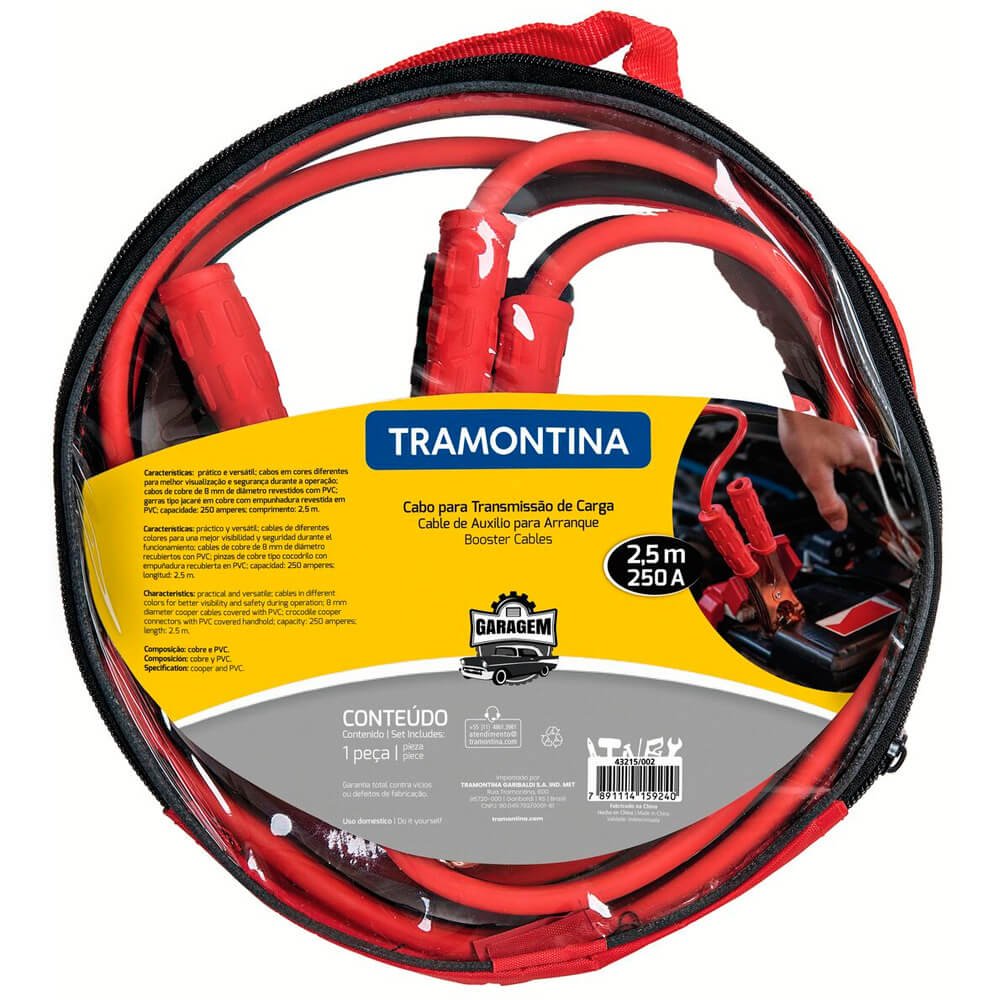 O Cabo para Transmissão de Carga Tramontina 250 A 2,5 m é uma peça prática e versátil. As garras tipo jacaré tornam a fixação da bateria muito mais eficiente e os cabos em cores diferentes auxiliam para uma melhor visualização e segurança durante a operação. Garantia de qualidade e segurança em todos os momentos!