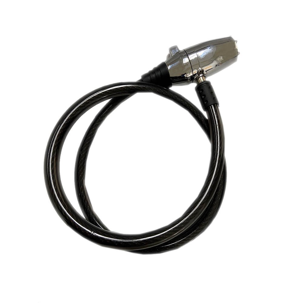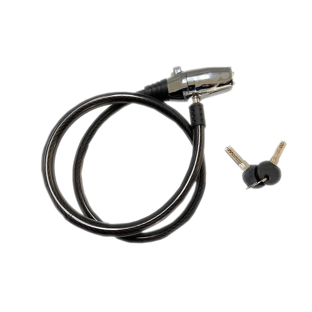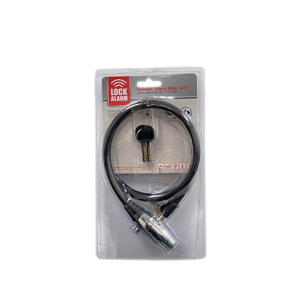 Cadeado cilíndrico cromado com alarme na parte inferior com 80 cm de cabo de aço