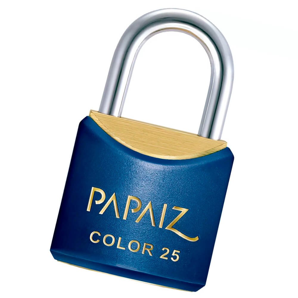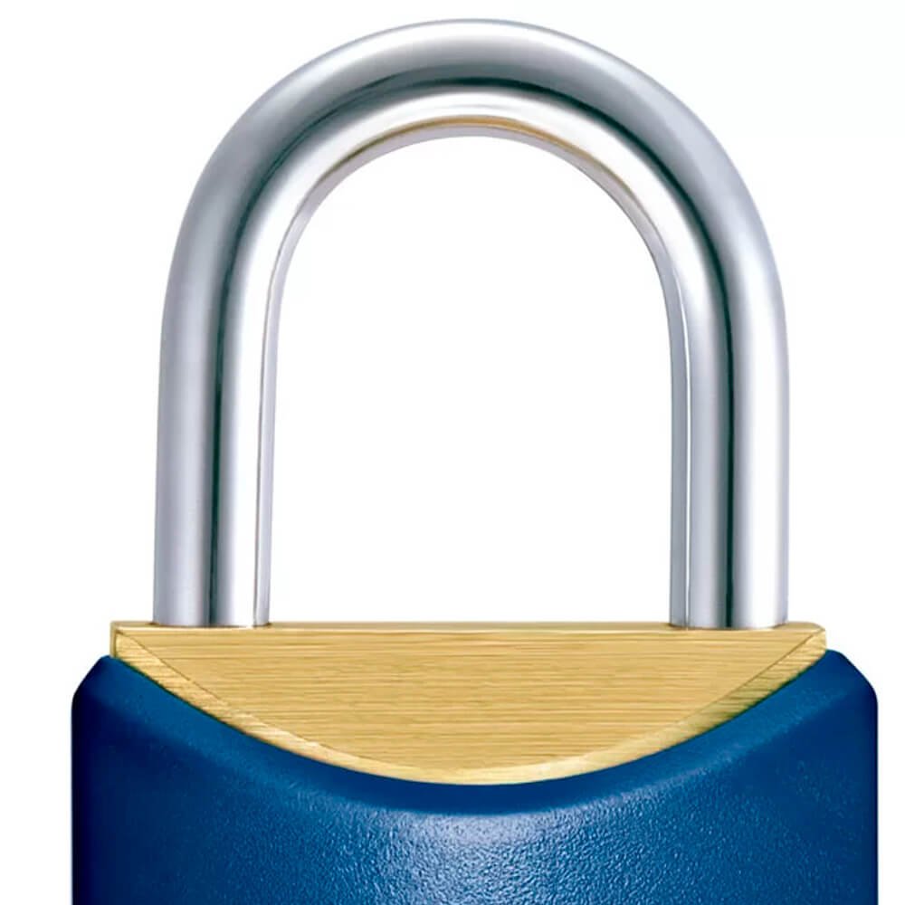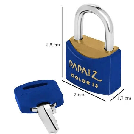 - Corpo produzido em latão maciço, revestido por uma capa plástica. Haste de aço cementada e cromada. Acompanha 2 chaves de latão niqueladas com capa plástica na cor do cadeado.