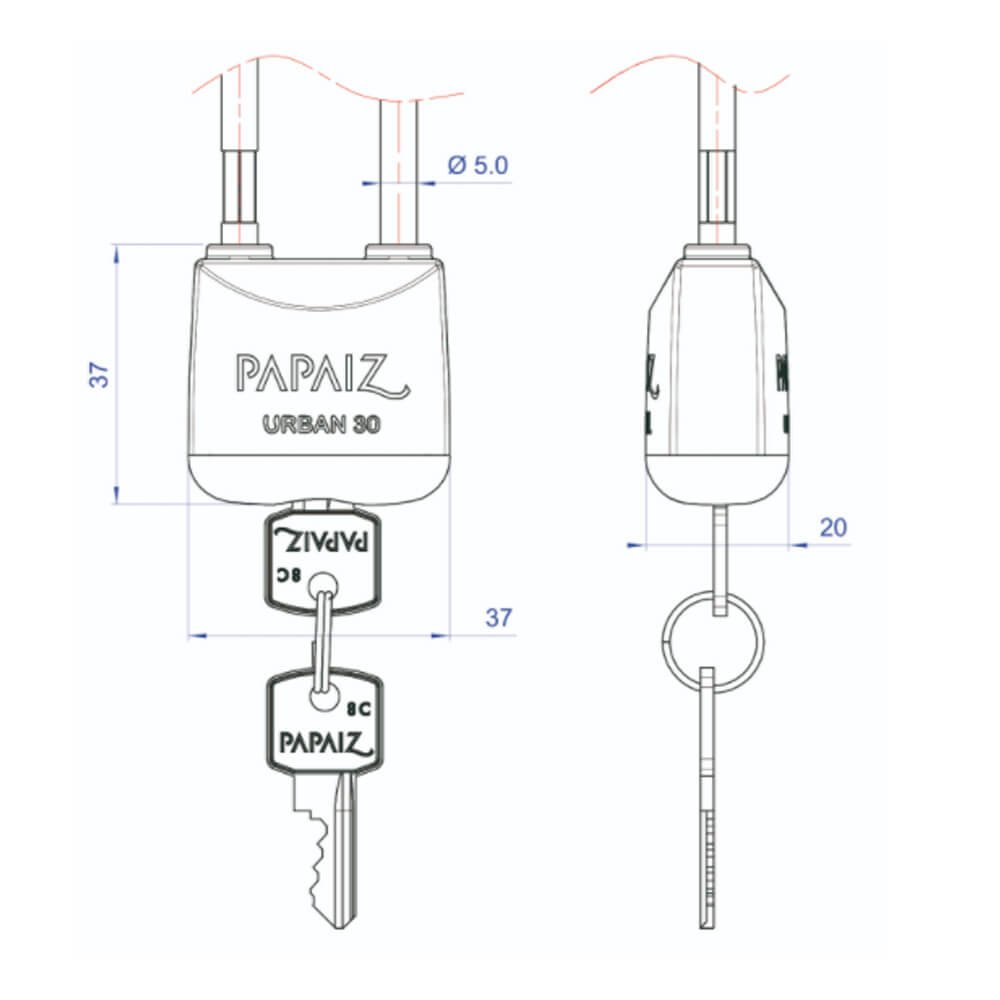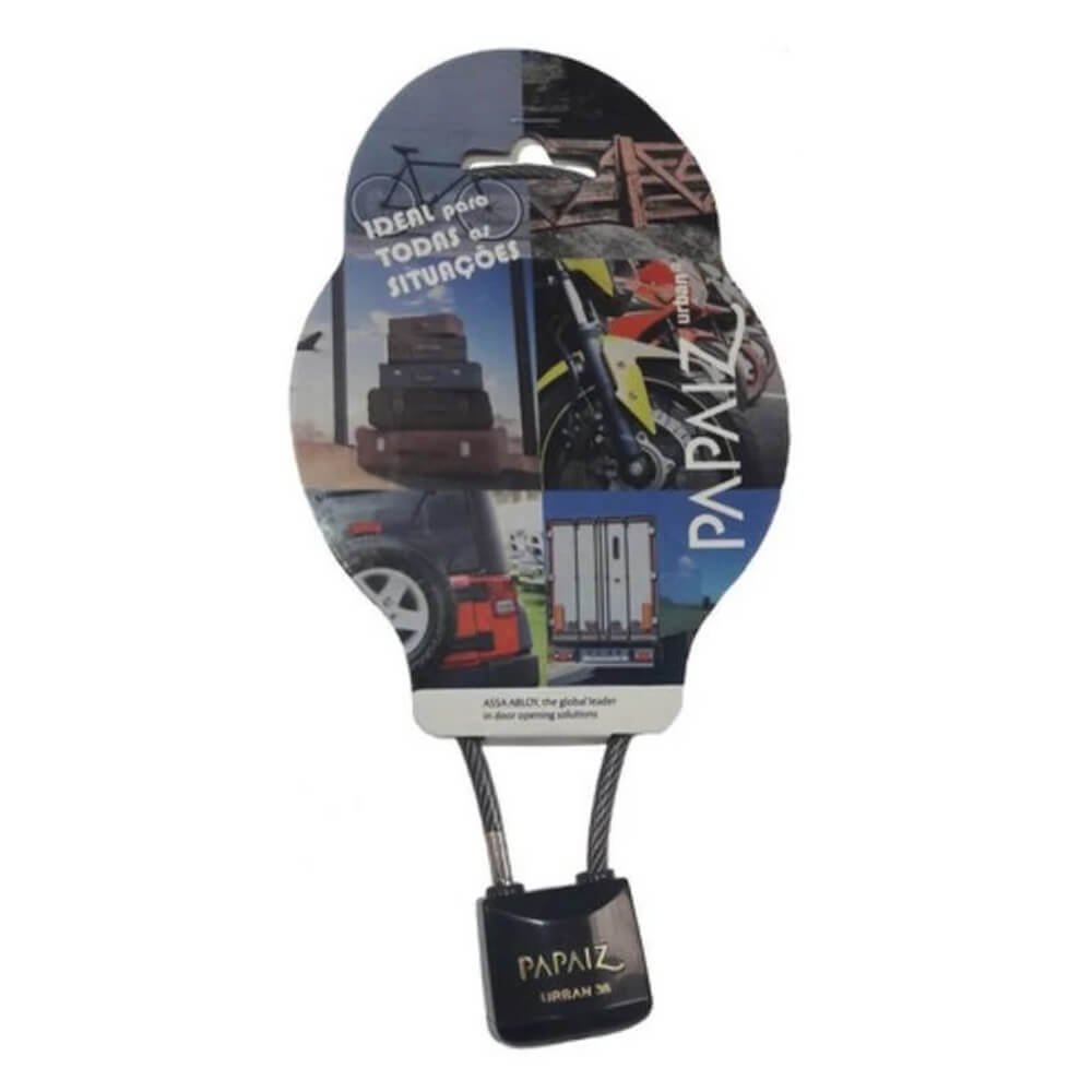 Cadeado com Cabo de Aço de 30/790mm Latão Preto Urban Azul Papaiz