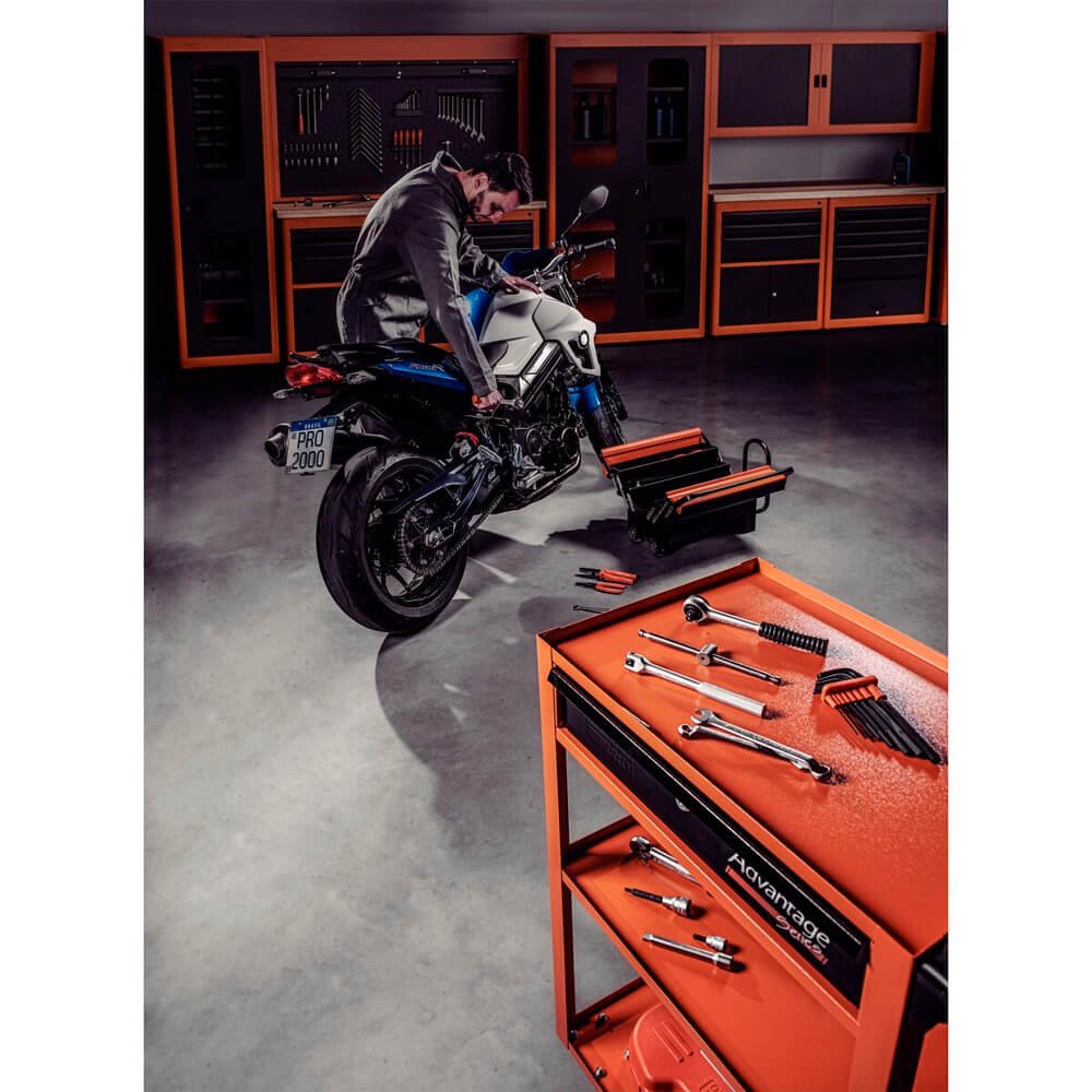 Organização e praticidade são as características que definem a Cargobox. Esta caixa de ferramentas da Tramontina PRO está disponível com e sem ferramentas, para atender às necessidades de profissionais tanto do segmento automotivo como industrial. O sistema exclusivo de rodinhas, puxador retrátil e alças fixas, facilita o transporte das ferramentas. Indicada também para manutenções externas, o trabalhador pode transportar as ferramentas de forma segura devido ao encaixe para inserção de cadeado de segurança. Porque não basta ter a ferramenta certa, é preciso ter ela sempre à mão.