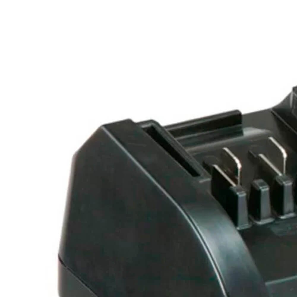 Carregador é indicado para baterias de 12V de lítio e conta com encaixe tipo slide, facilitando o uso.