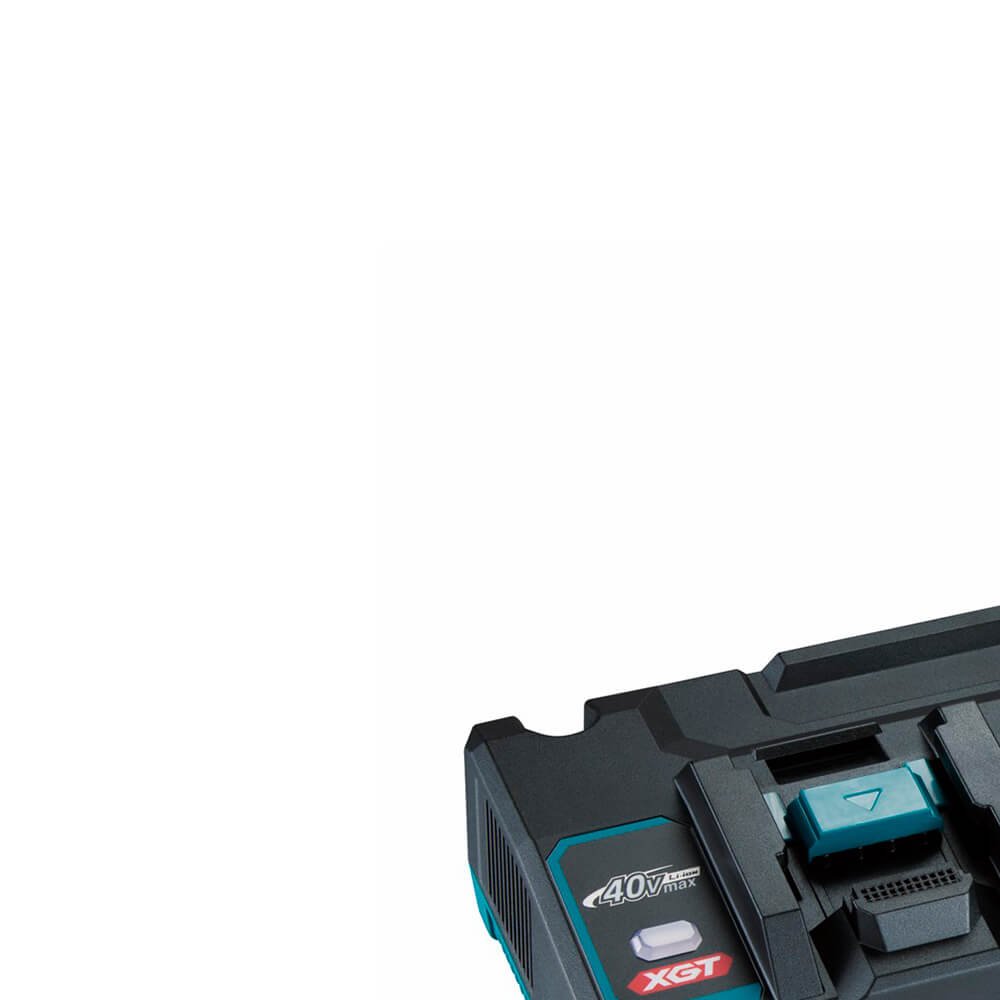 O Carregador de baterias de lítio duplo 40 volts DC40RB da Makita carrega duas baterias ao mesmo tempo, proporcionando aos usuários da ferramenta uma eficiência de carregamento incomparável, para que suas baterias passem mais tempo trabalhando e menos tempo sentado no carregador.