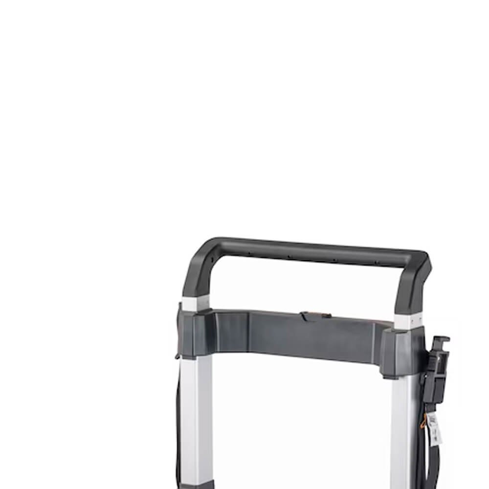 Rodízios frontais giratórios 360º, Rodas traseiras reforçadas para fácil manobra; Travas laterais permitem conectividade para um empilhamento fácil e seguro; Alça de Alumínio telescópica de 3 posições com suporte para armazenagem de ferramentas integrado.