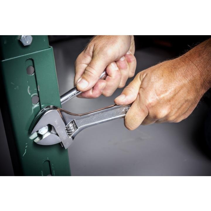 Mandíbula de abertura larga para maior capacidade, design hexagonal da mandíbula reduz o deslizamento e aperta firmemente o parafuso. Controle ajustável mais largo para maior comodidade na operação. Fabricada em Aço Cromo-Vanádio (Cr-V);