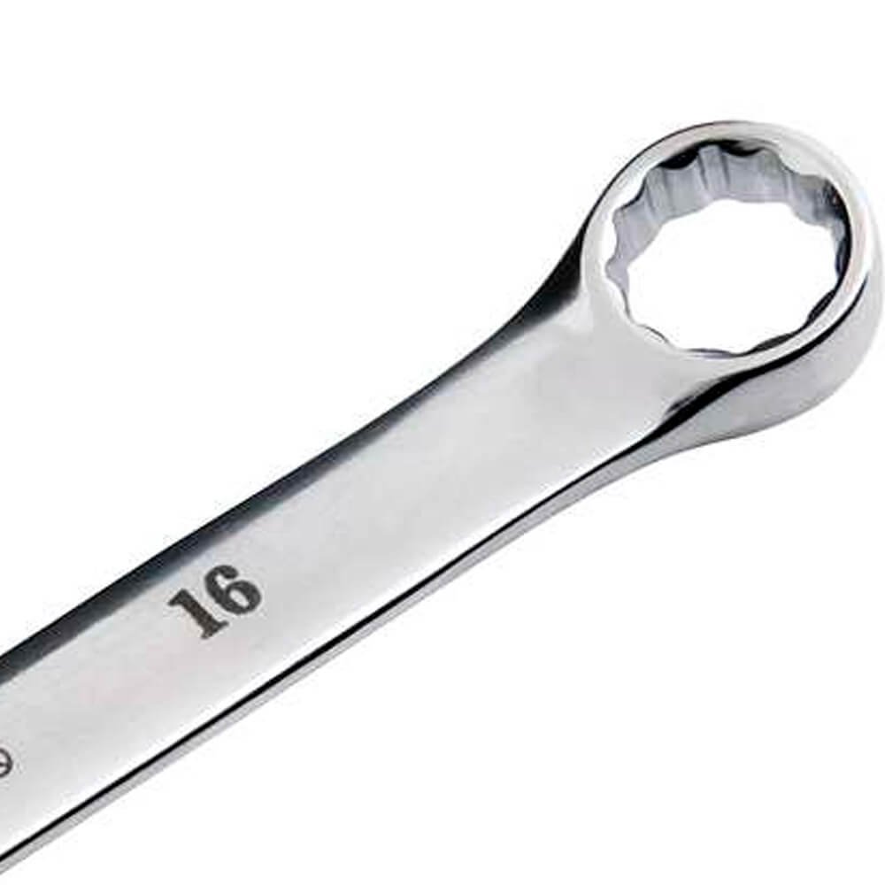 Produzida em aço cromo vanádio, proporcionando melhor qualidade e durabilidade. Possui acabamento cromado fosco, que oferece maior resistência à oxidação/corrosão. Chave combinada, sendo um lado fixa e o outro estrela, possibilitando aplicações em locais de difícil acesso.