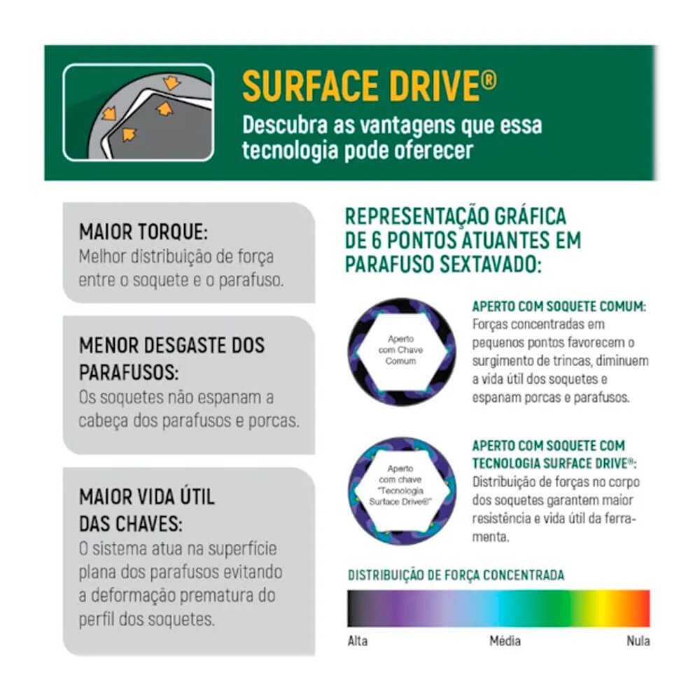 - Tecnologia Surface Drive evita que a cabeça do parafuso espane, garantindo maior produtividade para o usuário e menor custo