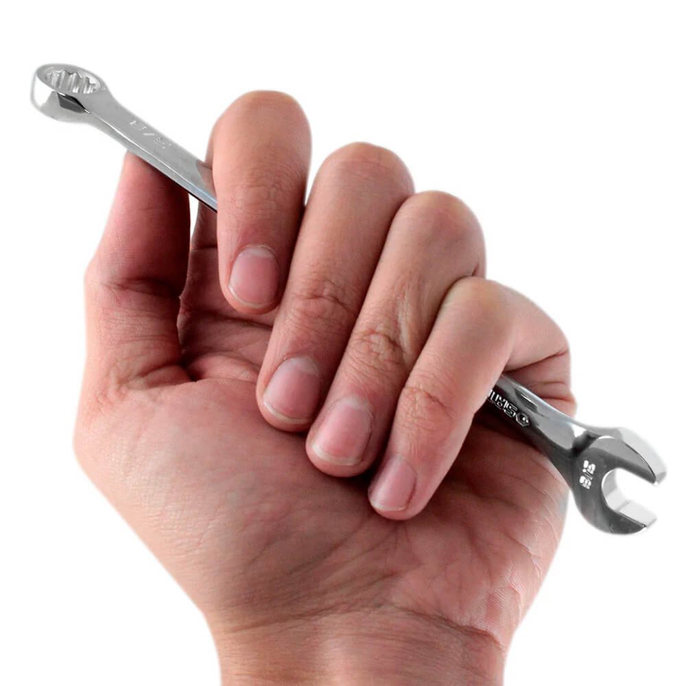 Seu formato invertido e alongado permite que mais torque seja aplicado com menos esforço, tornando-a uma escolha ideal para trabalhos em que é necessário aplicar força independentemente do lado em que o profissional esteja. Além disso, essa chave é forjada em aço cromo vanádio com acabamento cromado e polido em peça única, proporcionando máxima robustez e resistência à corrosão. A camada de cromo garante que a chave seja mais segura, pois não descasca, e ainda é mais fácil de limpar, tornando-a prática e eficiente.