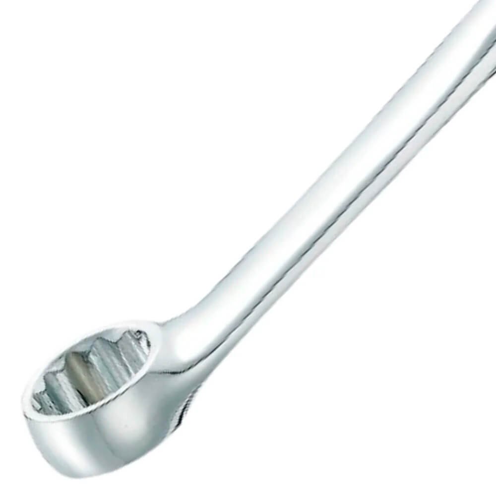 Forjado em aço com acabamento cromado e polido em peça única para máxima robustez e resistência à corrosão. Muito mais segura pois a camada de cromo não descasca e prática por ser mais fácil de limpar. Fabricado em aço Cromo Vanádio para maior resistência e durabilidade. A chave combinada invertida, é uma ferramenta essencial para profissionais que precisam de precisão e eficiência na aplicação de torque. Com um formato ergonômico transversal, ela oferece conforto e facilidade de uso, independentemente do lado que o profissional esteja utilizando.