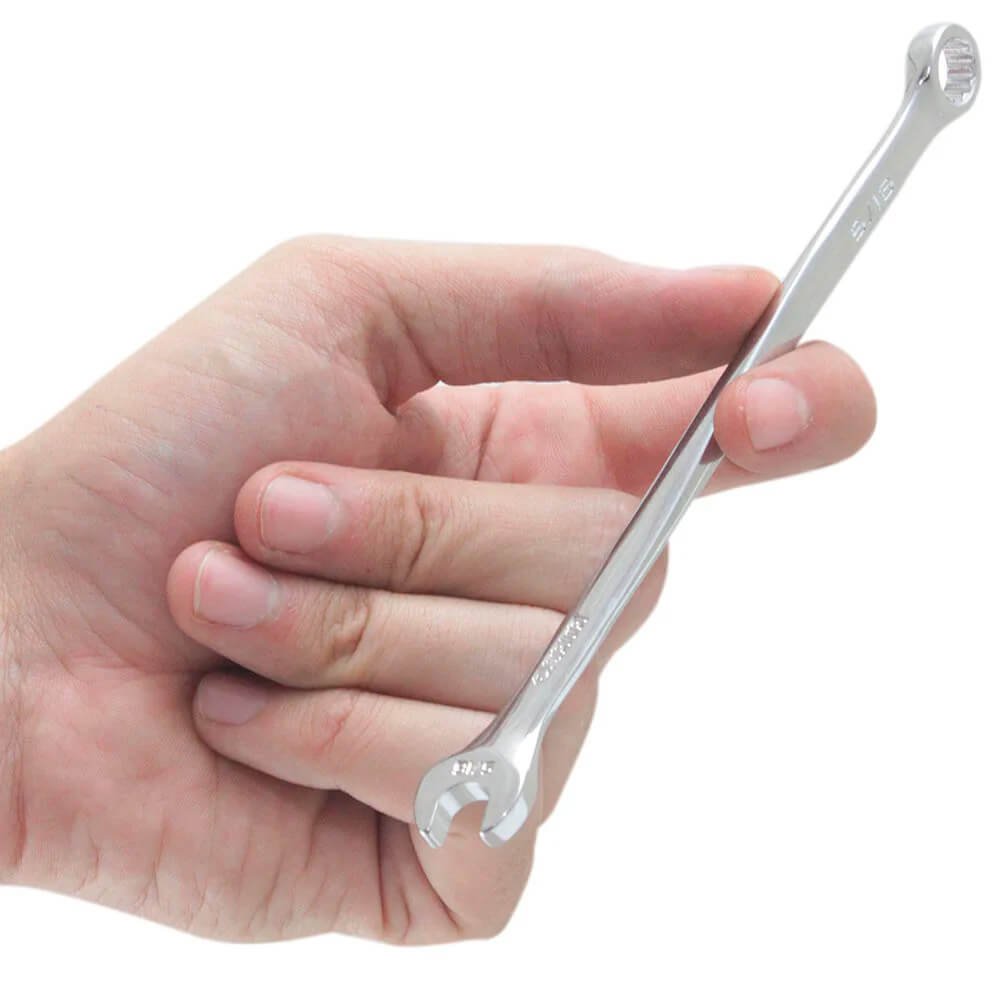 Graças ao seu formato invertido mais alongado, essa chave proporciona mais torque com menos esforço, permitindo que você aplique a força necessária de forma mais eficiente. Essa característica é particularmente útil em situações em que o espaço é limitado, tornando a ferramenta uma escolha ideal para trabalhos em locais apertados. Feita em aço cromo vanádio e com acabamento cromado e polido, a chave combinada invertida é incrivelmente robusta e resistente à corrosão. Além disso, ela é muito mais segura do que outras ferramentas, pois a camada de cromo não descasca, garantindo a integridade da superfície da ferramenta. E para completar, ela é fácil de limpar, tornando-a ainda mais prática para o uso diário.