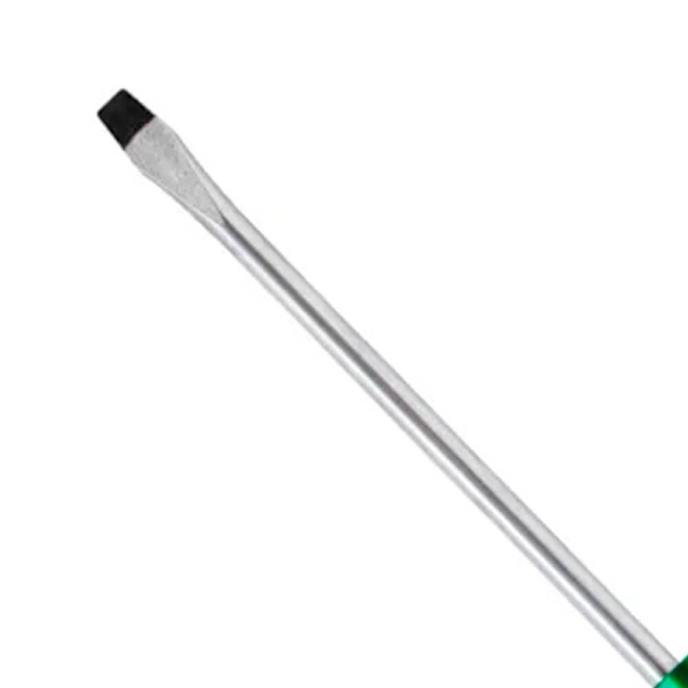 Chave De Fenda com cabo PVC translucido verde ergonômico com ponta oxidada para evitar descascamento e proporcionar mais segurança. Possui a haste toda temperada com acabamento niquelado e cromado. Ideal para uso profissional pesado, seu cabo ergonômico rígido e resistente injetado em PVC na cor verde transparente deixa aparente a profundidade que a haste está garantindo máxima qualidade e resistência para o trabalho diário.