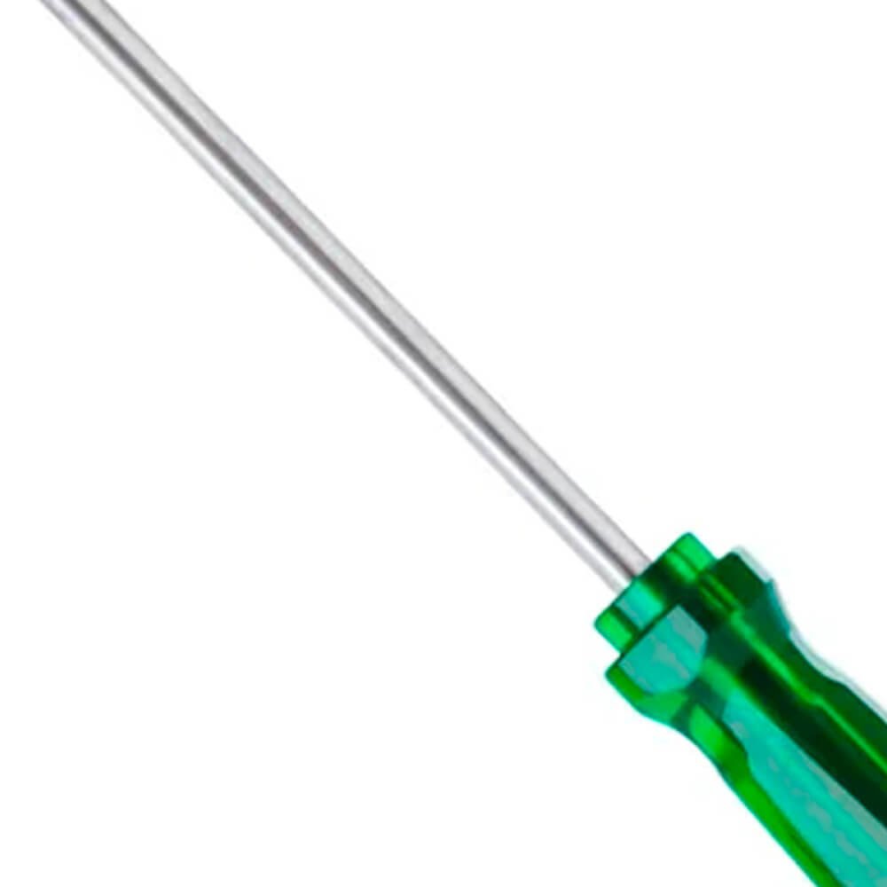 Chave De Fenda com cabo PVC translucido verde ergonômico com ponta oxidada para evitar descascamento e proporcionar mais segurança. Possui a haste toda temperada com acabamento niquelado e cromado. Ideal para uso profissional pesado, seu cabo ergonômico rígido e resistente injetado em PVC na cor verde transparente deixa aparente a profundidade que a haste está garantindo máxima qualidade e resistência para o trabalho diário.