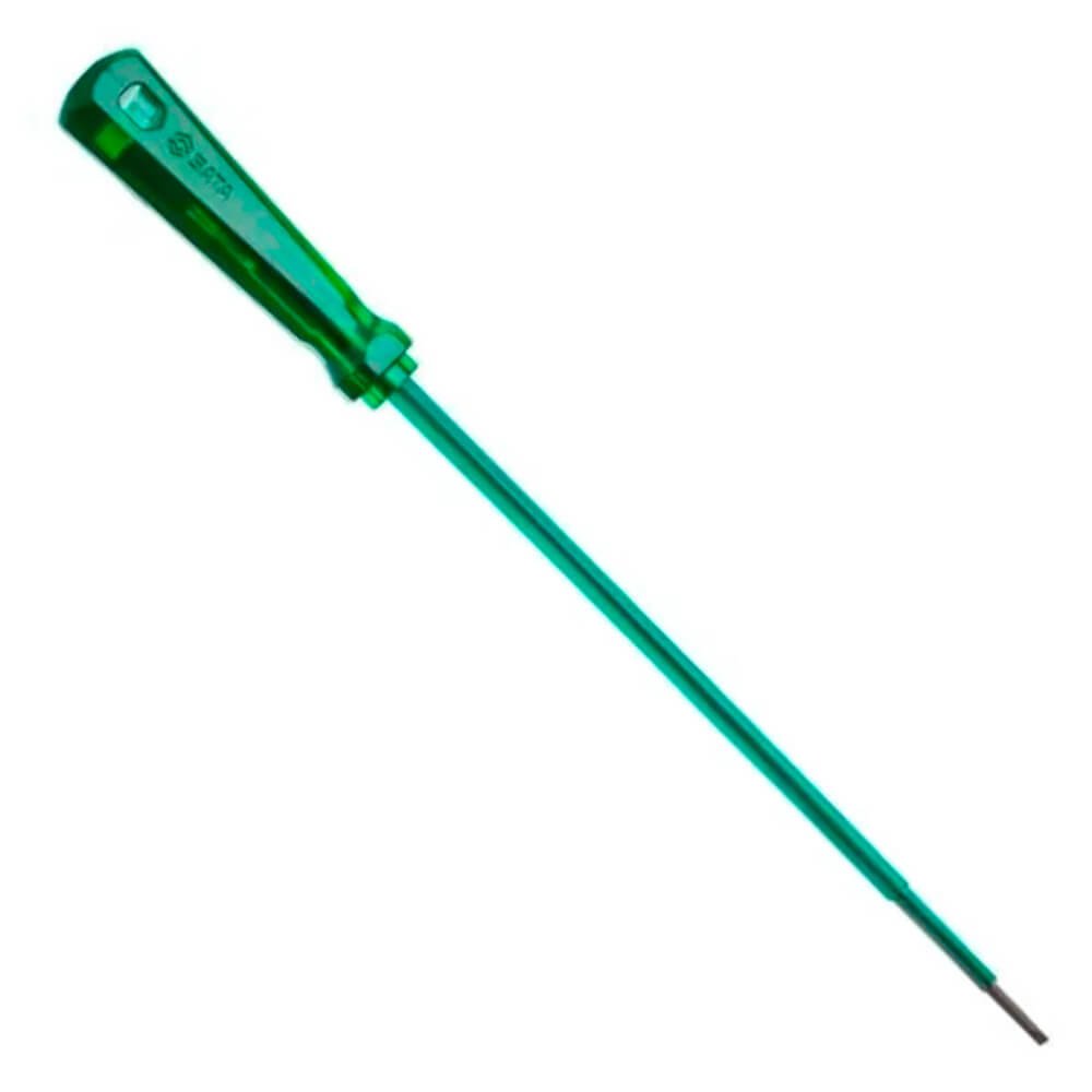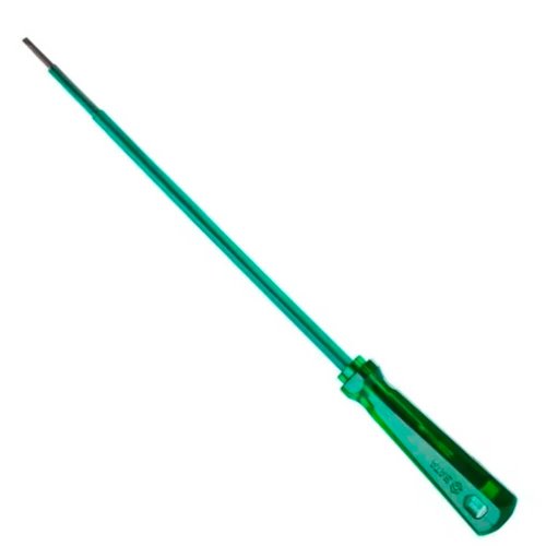 Chave De Fenda Isolada com cabo PVC translucido verde com haste isolada de acordo com NR10. Garante proteção ao profissional quando utilizadas em trabalhos com áreas energizadas. Ponta oxidada para evitar descascamento e proporcionar mais segurança. Possui a haste toda temperada com acabamento niquelado e cromado. Atende e supera norma - NBR 9699. Esta Norma aplica-se a ferramentas manuais isoladas e isolantes usadas para trabalho em instalações elétricas energizadas ou peças. Isolação do cabo para 1000v. Ideal para uso profissional pesado, seu cabo ergonômico rígido e resistente injetado em PVC na cor verde translucido deixa aparente a profundidade que a haste está garantindo máxima qualidade e resistência para o trabalho diário.