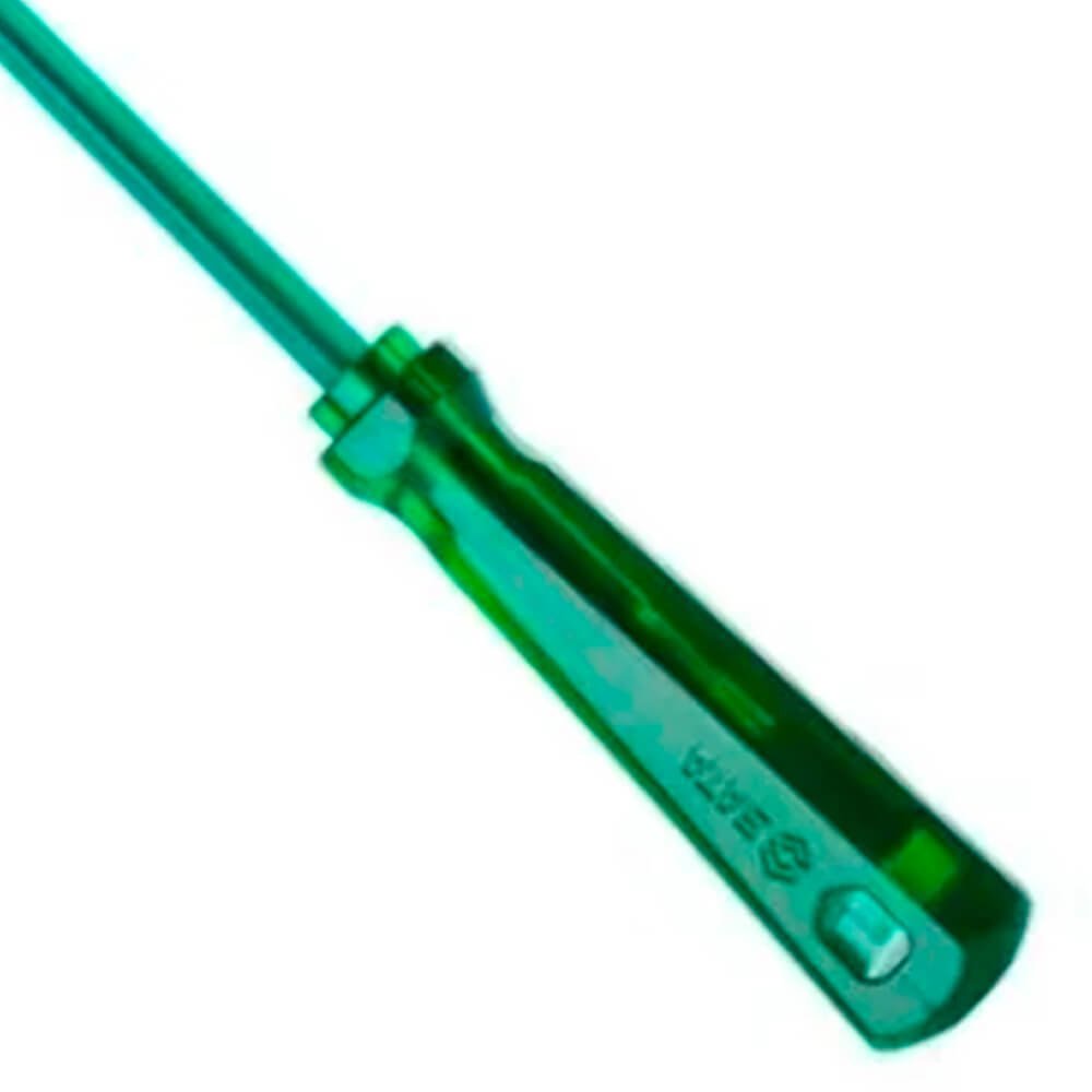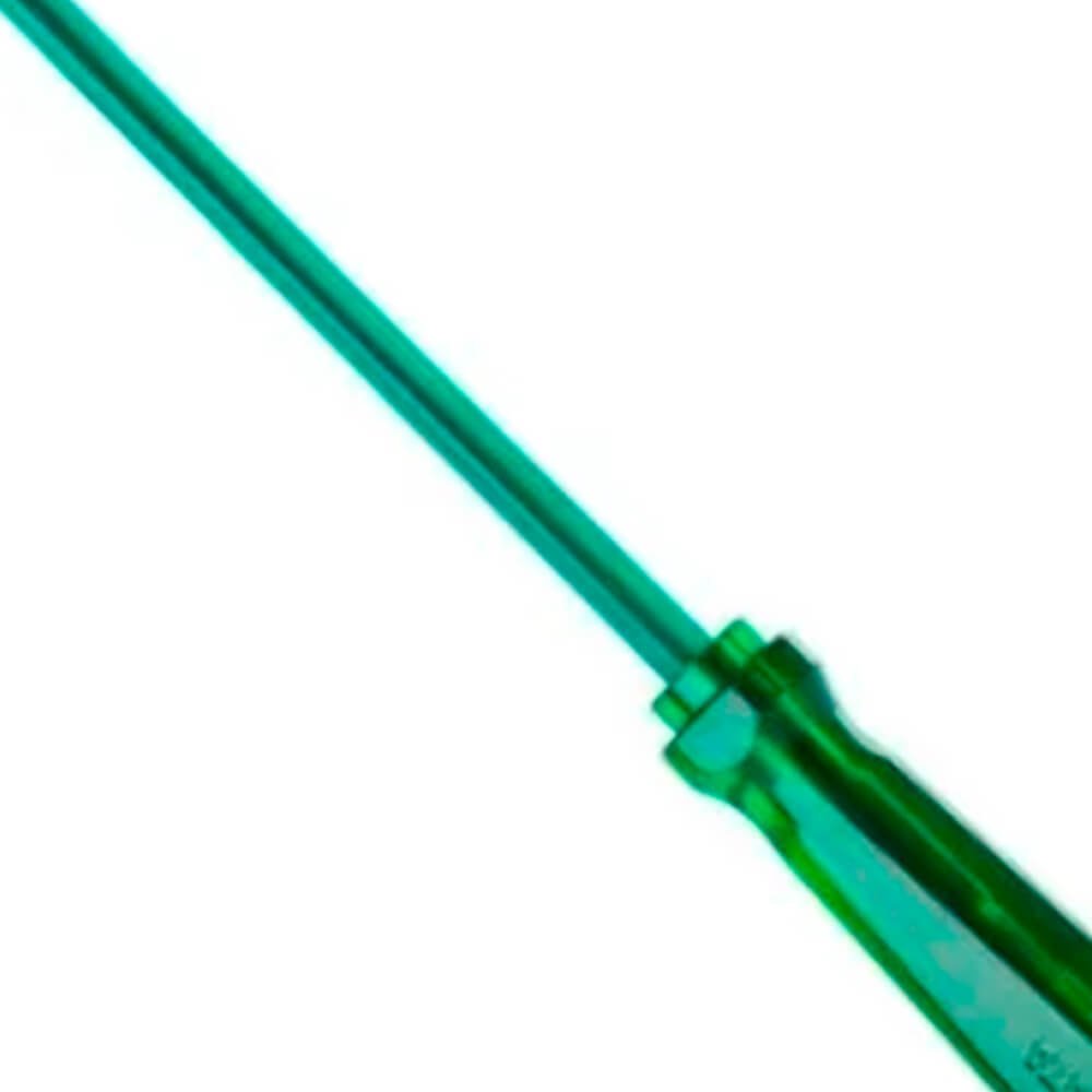 Chave De Fenda Isolada com cabo PVC translucido verde com haste isolada de acordo com NR10. Garante proteção ao profissional quando utilizadas em trabalhos com áreas energizadas. Ponta oxidada para evitar descascamento e proporcionar mais segurança. Possui a haste toda temperada com acabamento niquelado e cromado. Atende e supera norma - NBR 9699. Esta Norma aplica-se a ferramentas manuais isoladas e isolantes usadas para trabalho em instalações elétricas energizadas ou peças. Isolação do cabo para 1000v. Ideal para uso profissional pesado, seu cabo ergonômico rígido e resistente injetado em PVC na cor verde translucido deixa aparente a profundidade que a haste está garantindo máxima qualidade e resistência para o trabalho diário.