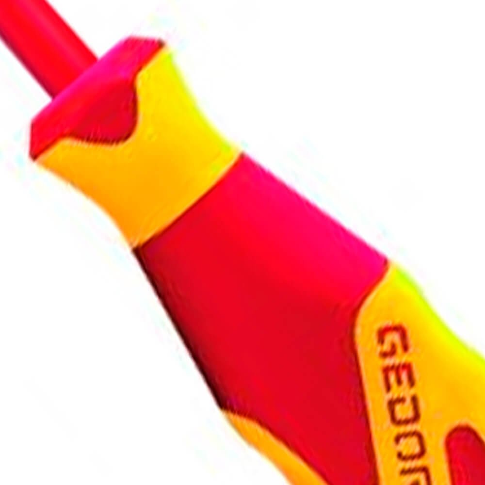 Chave de fenda simples isolada até 1000V. Desenvolvida em aço molibdênio vanádio plus e polímero anti-chamas com acabamento da haste escurecido. Produzida de acordo com as normas EN 60900 / IEC 60900 e NR 10. Com design da empunhadura ergonômica. Possui perfil de encaixe para parafuso tipo fenda simples.