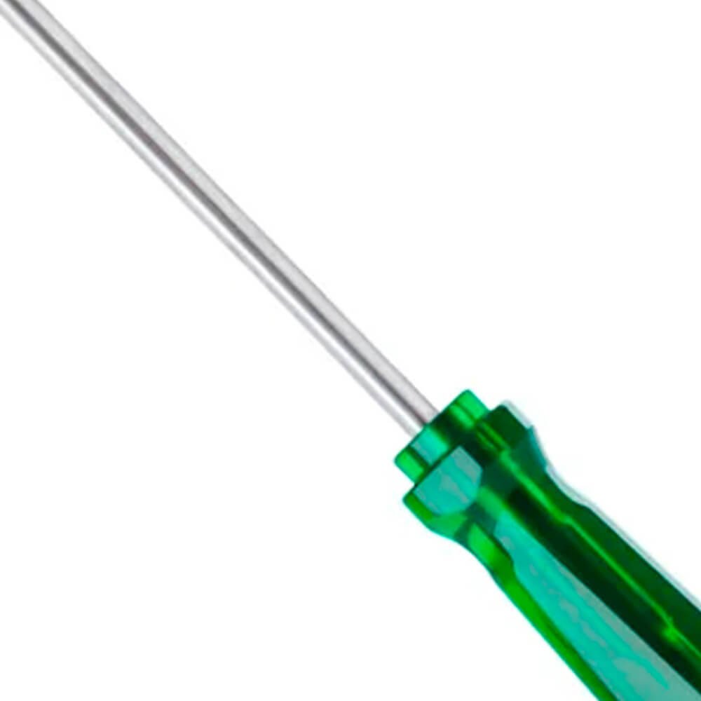 Chave De Fenda com cabo PVC translucido verde ergonômico com ponta oxidada para evitar descascamento e proporcionar mais segurança. Possui a haste toda temperada com acabamento niquelado e cromado. Ideal para uso profissional pesado, seu cabo ergonômico rígido e resistente injetado em PVC na cor verde transparente deixa aparente a profundidade que a haste está garantindo máxima qualidade e resistência para o trabalho diário.