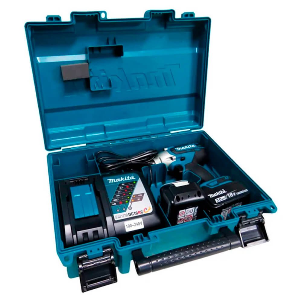- 2 baterias 18V 3,0 Ah, carregador rápido e maleta.