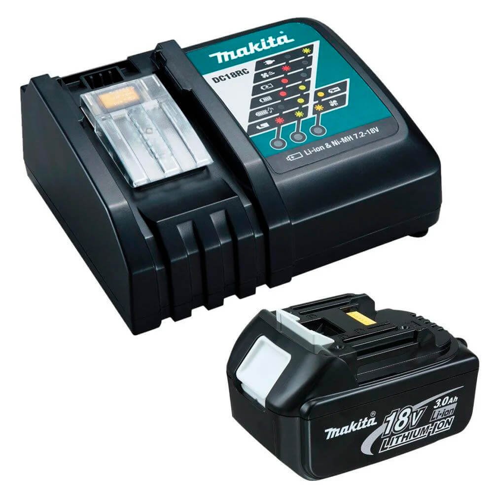 2 baterias 18V 3,0 Ah, carregador rápido e maleta.