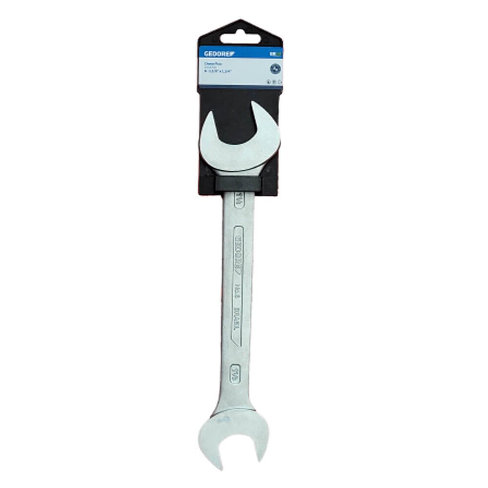 Aço Gedore-Vanadium. Acabamento niquelado e cromado. Cabeças estreitas e com medidas diferentes em cada extremidade. Chave fixa bitolas: 1/4x5/16" à 1.1/8x1.1/4" são encarteladas para autoserviço. Com acabamento niquelado e cromado; Possui Cabeças estreitas e com medidas diferentes em cada extremidade; Indicada para aperto e desaperto de porcas, parafusos quadrados ou sextavados.