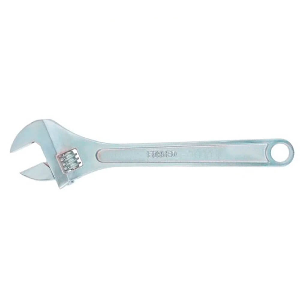 A chave inglesa ajustável é feita de aço submetido a têmpera seletiva. O parafuso sem fim incorporado é protegido contra a corrosão. A chave é projetada para montagem e desmontagem de conexões de rosca de vários tamanhos.