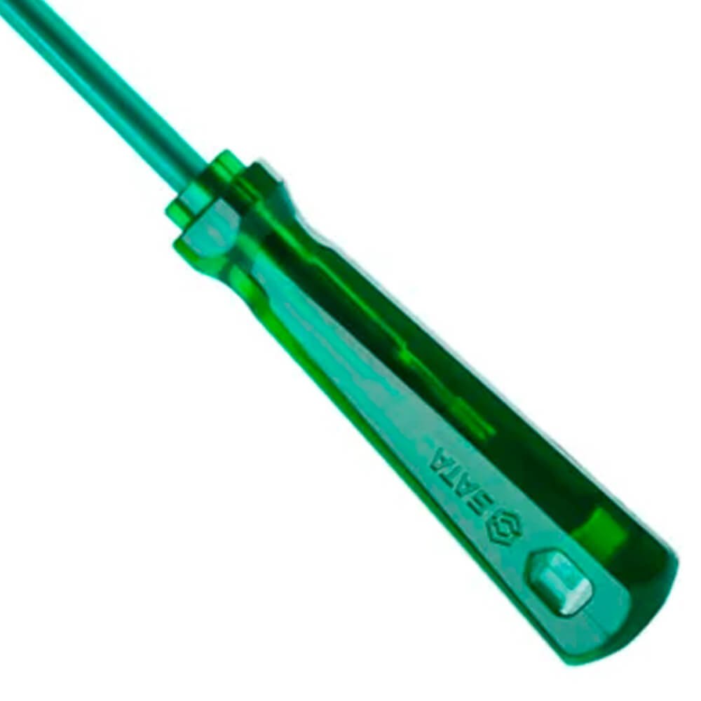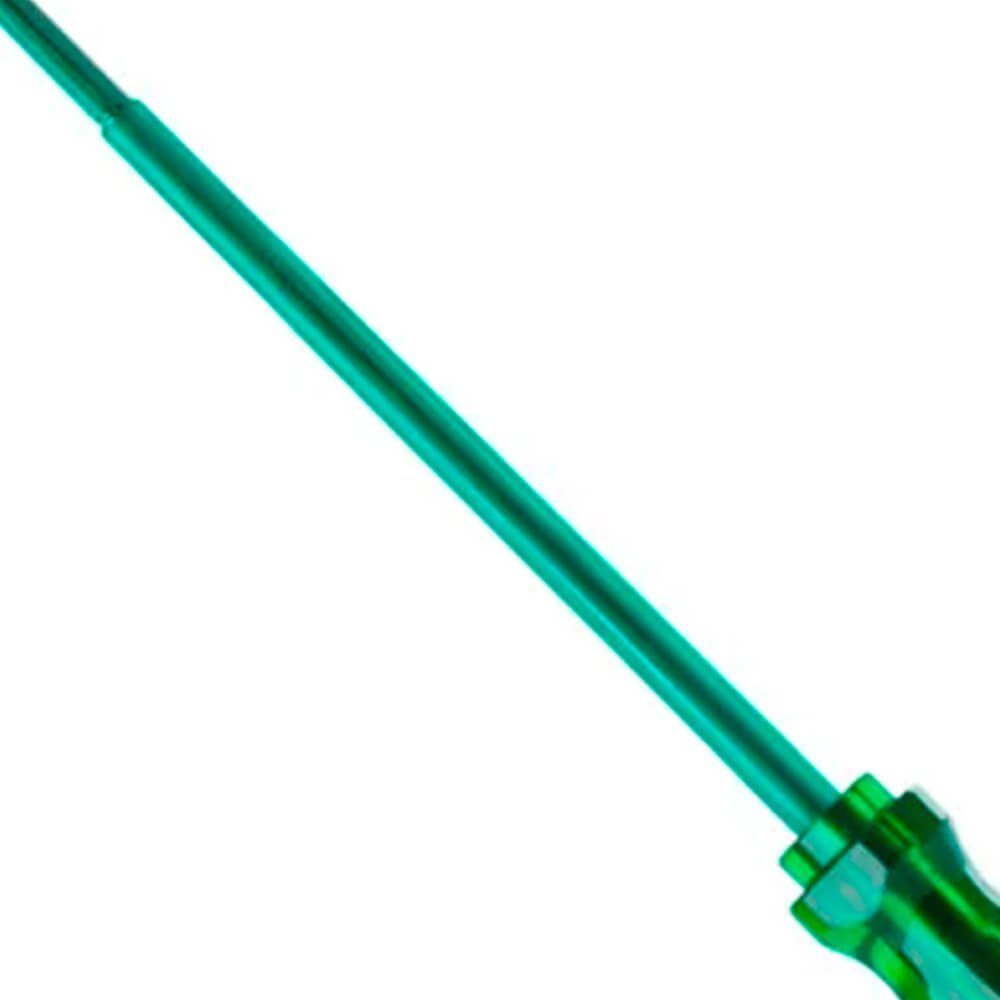 Chave Phillips® Isolada com cabo PVC translucido verde com haste isolada de acordo com NR10. Garante proteção ao profissional quando utilizadas em trabalhos com áreas energizadas. Ponta oxidada para evitar descascamento e proporcionar mais segurança. Possui a haste toda temperada com acabamento niquelado e cromado. Atende e supera norma - NBR 9699. Esta Norma aplica-se a ferramentas manuais isoladas e isolantes usadas para trabalho em instalações elétricas energizadas ou peças. Isolação do cabo para 1000v. Ideal para uso profissional pesado, seu cabo ergonômico rígido e resistente injetado em PVC na cor verde translucido deixa aparente a profundidade que a haste está garantindo máxima qualidade e resistência para o trabalho diário.